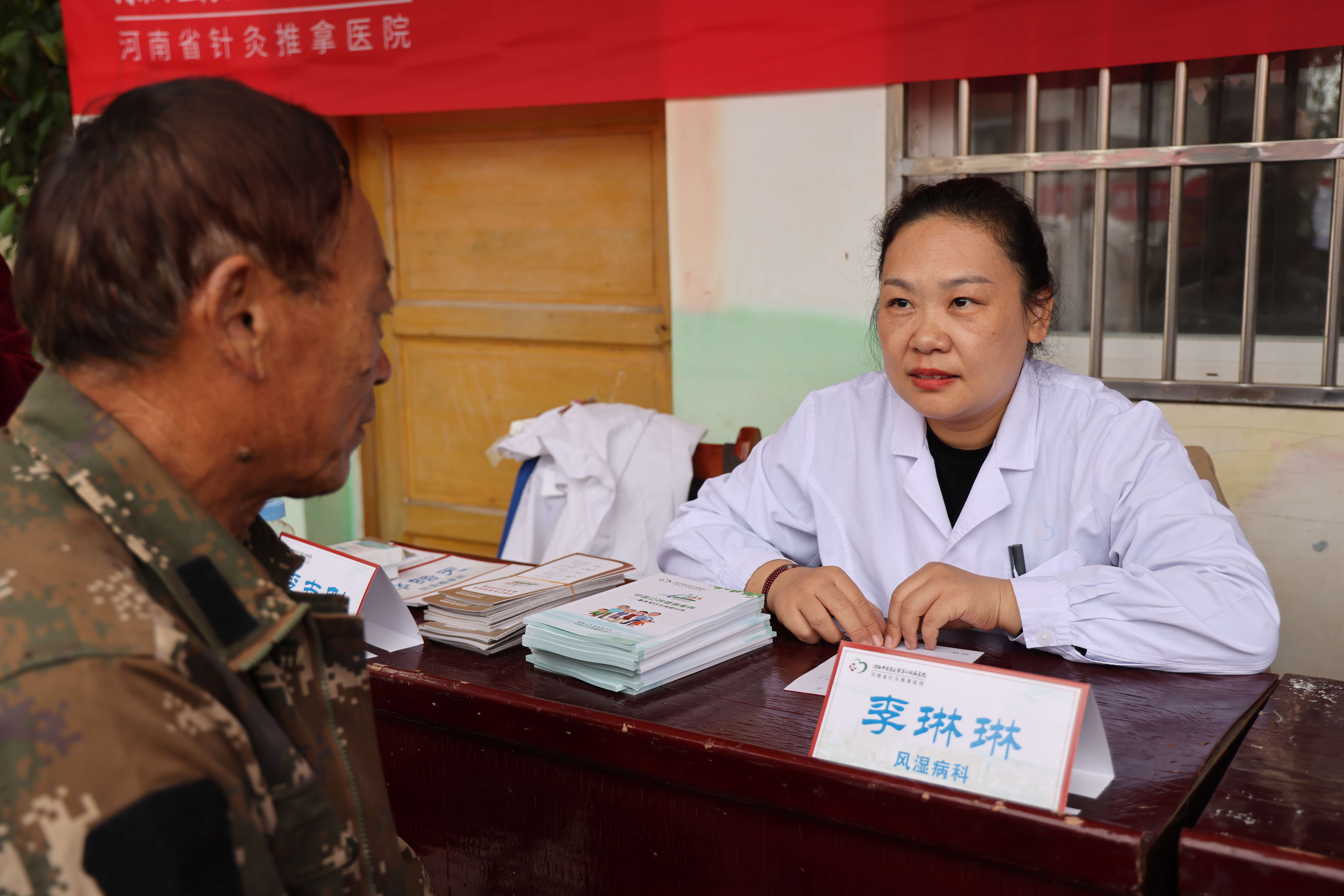 在南天门村设立义诊点,我院康复科、风湿病科、内科等多名专家以及志愿者,为村民提供中医体质辨识、针灸推拿体验等中医药服务。针对农村地区常见的颈肩腰腿痛、慢性病等问题,专家们耐心细致地询问病情,辨证施治,针对秋季养生和当地多发病症提供了个性化的健康指导和治疗建议,并指导村民日常保健方法。活动期间,我院精心策划中医药文化体验环节,向村民普及中医养生知识。向村民们发放了精心准备的艾灸锤、经络梳、中医药文化知识扑克牌等实用保健物品,并现场教学使用方法,让村民们在亲身体验中感受中医药的独特魅力,有效提升了村民的健康素养和自我保健能力。