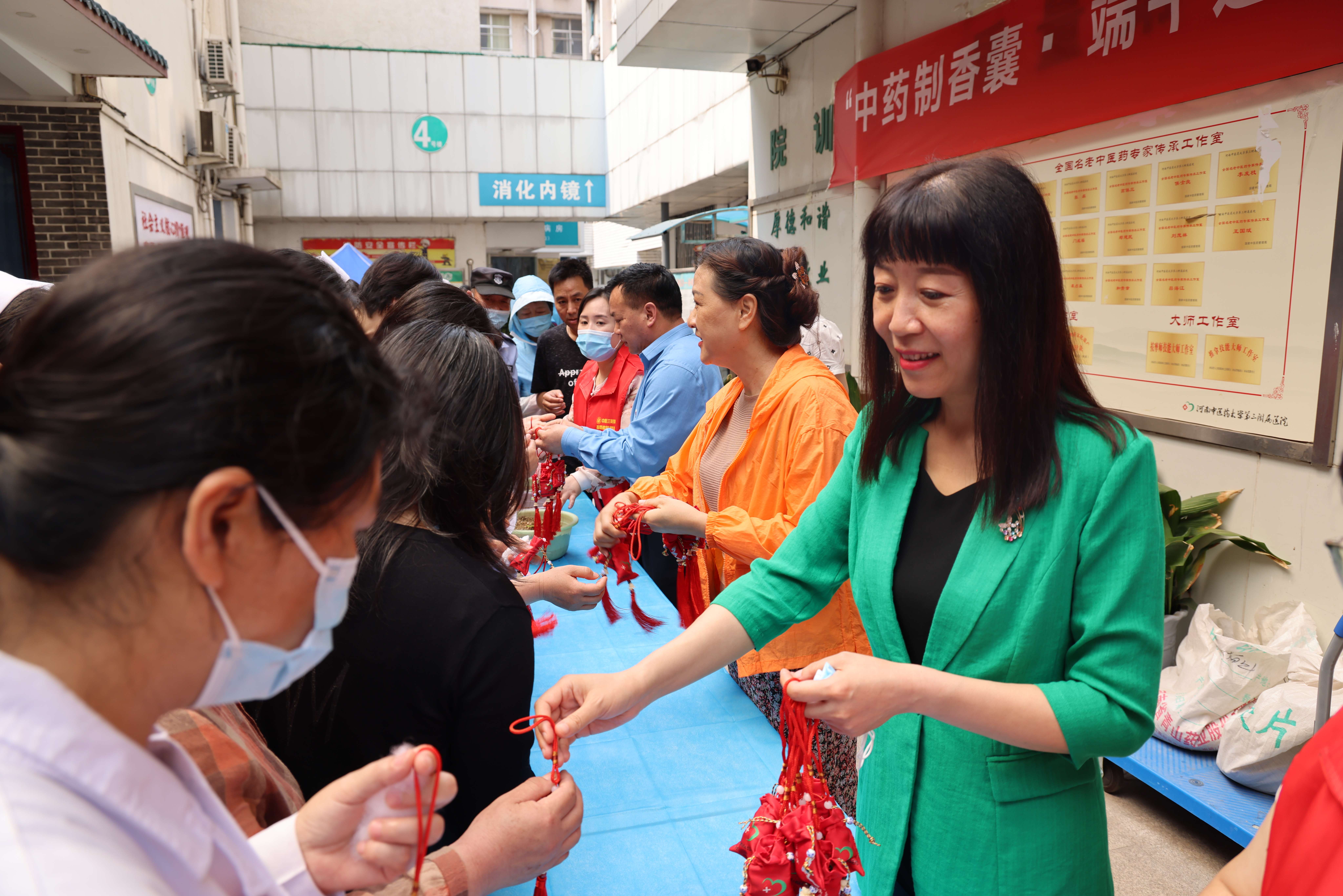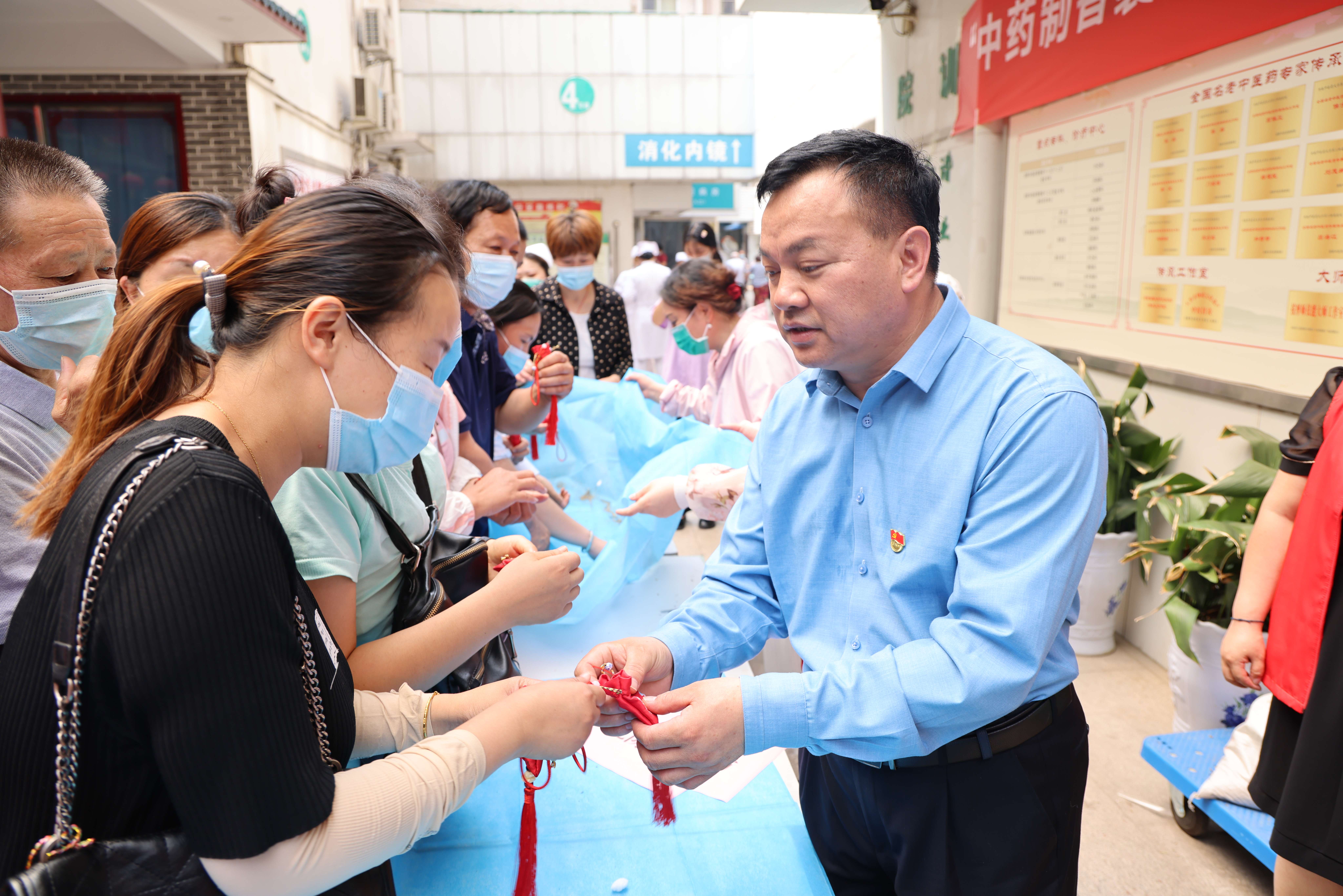 本网讯(通讯员吴金苗 图潘向昆) 在端午节到来之际,为弘扬中华民族传统文化,扎实推进党史学习教育,结合“我为群众办实事”实践活动,6月11日上午,院工会、精神文明办在中药房大厅举办了“中药制香囊,端午送安康”我们的节日——端午节做香囊送香囊活动,为人民群众送去健康和关爱。