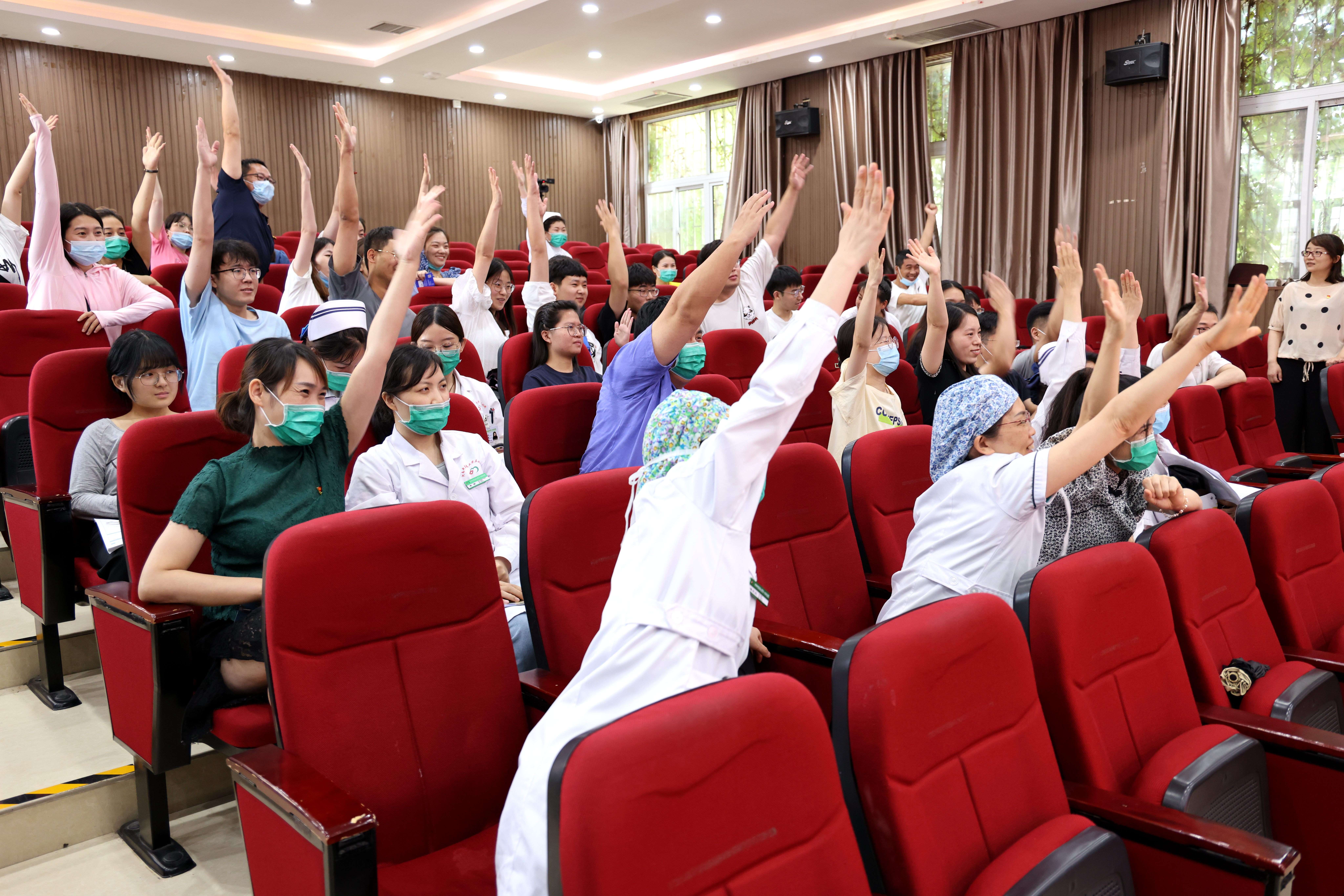 风险答题环节,主持人的问题刚问完,外科党总支书记焦纯杰就回答出标准答案,现场掌声响起。