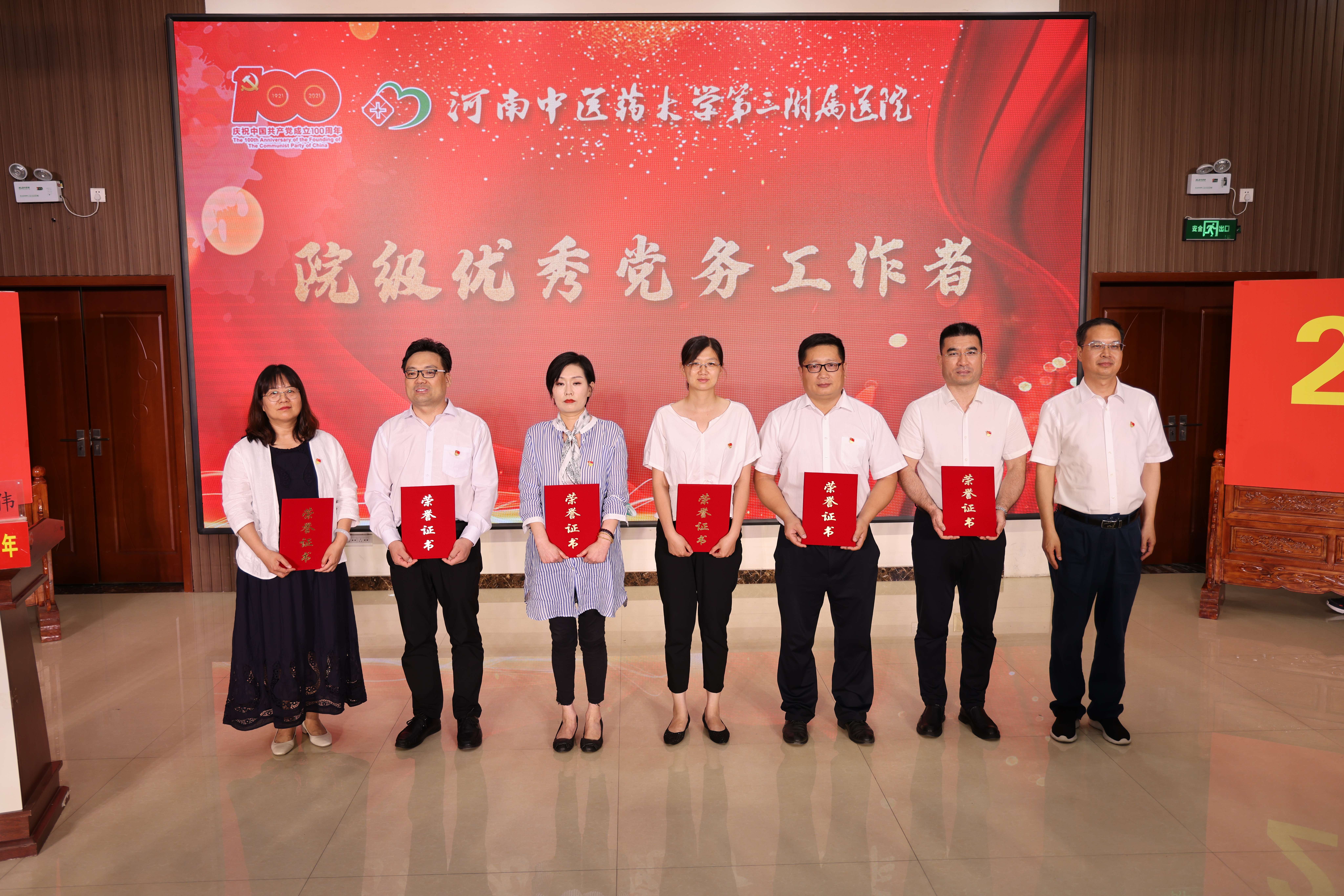 院党委副书记陶洁宣读了中共河南省委“两优一先”、“省级样板党支部”、校脱贫攻坚先进集体及个人表彰决定;院党委副书记焦钧宣读了校党委的“两优一先”表彰决定;院纪委书记刘会勋宣读了院党委的“两优一先”表彰决定。院领导分别为获得省、校、院级先进基层党组织、样板党支部、优秀党务工作者和优秀共产党员代表进行颁奖。