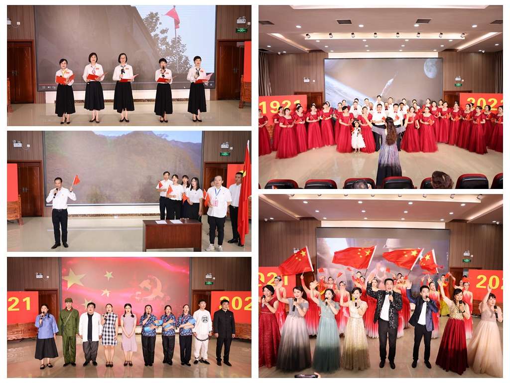 文艺演出在一曲《我和我祖国》朗诵歌唱声中拉开序幕。《唱支山歌给党听》等8个节目展示了党的丰功伟绩,讴歌了伟大的新时代。文艺演出结束,全场起立,共同高唱《没有共产党就没有新中国》,热烈掌声经久不息。