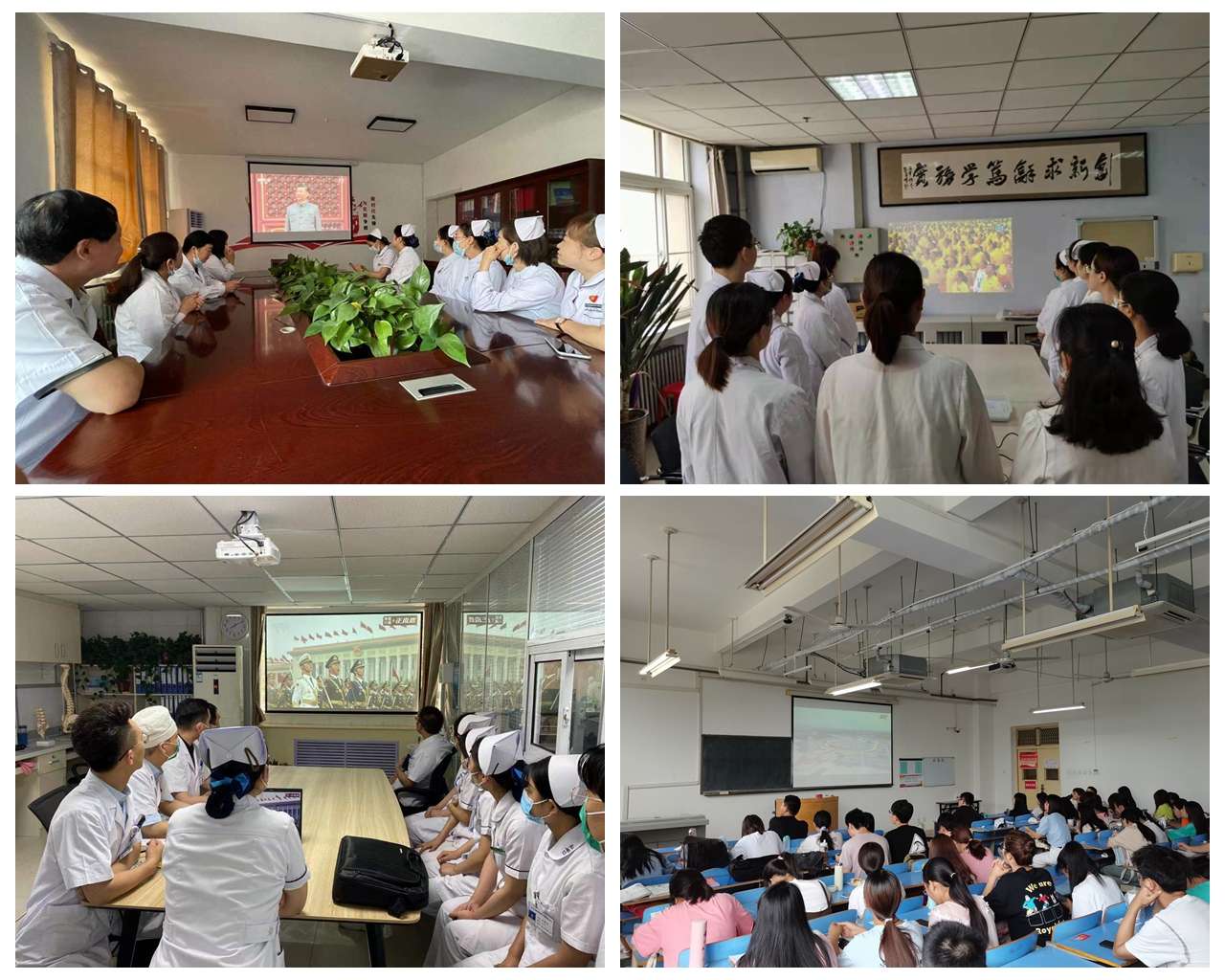 院领导和各党总支、直属党支部委员及各民主党派、教职工生代表收看大会实况