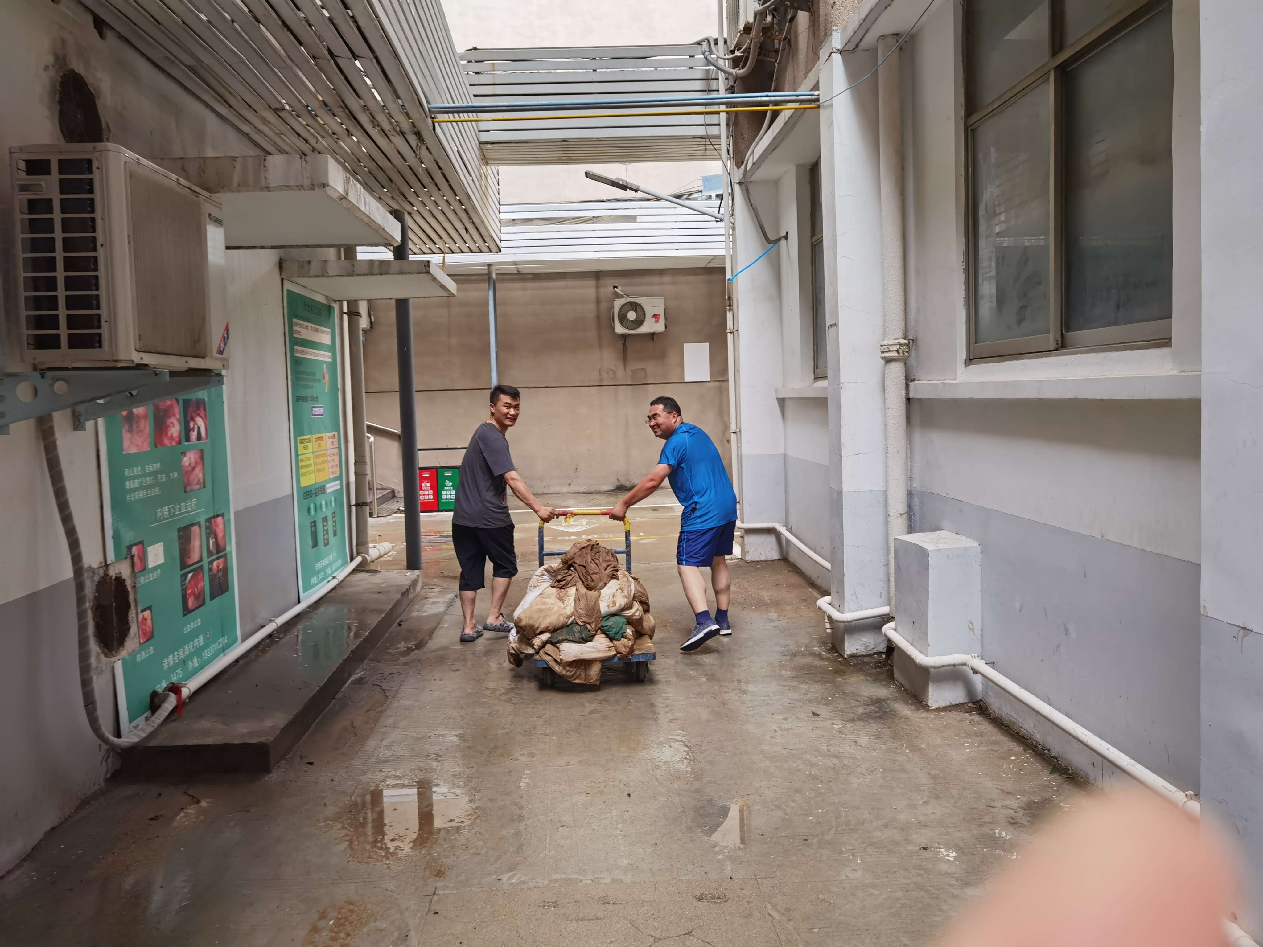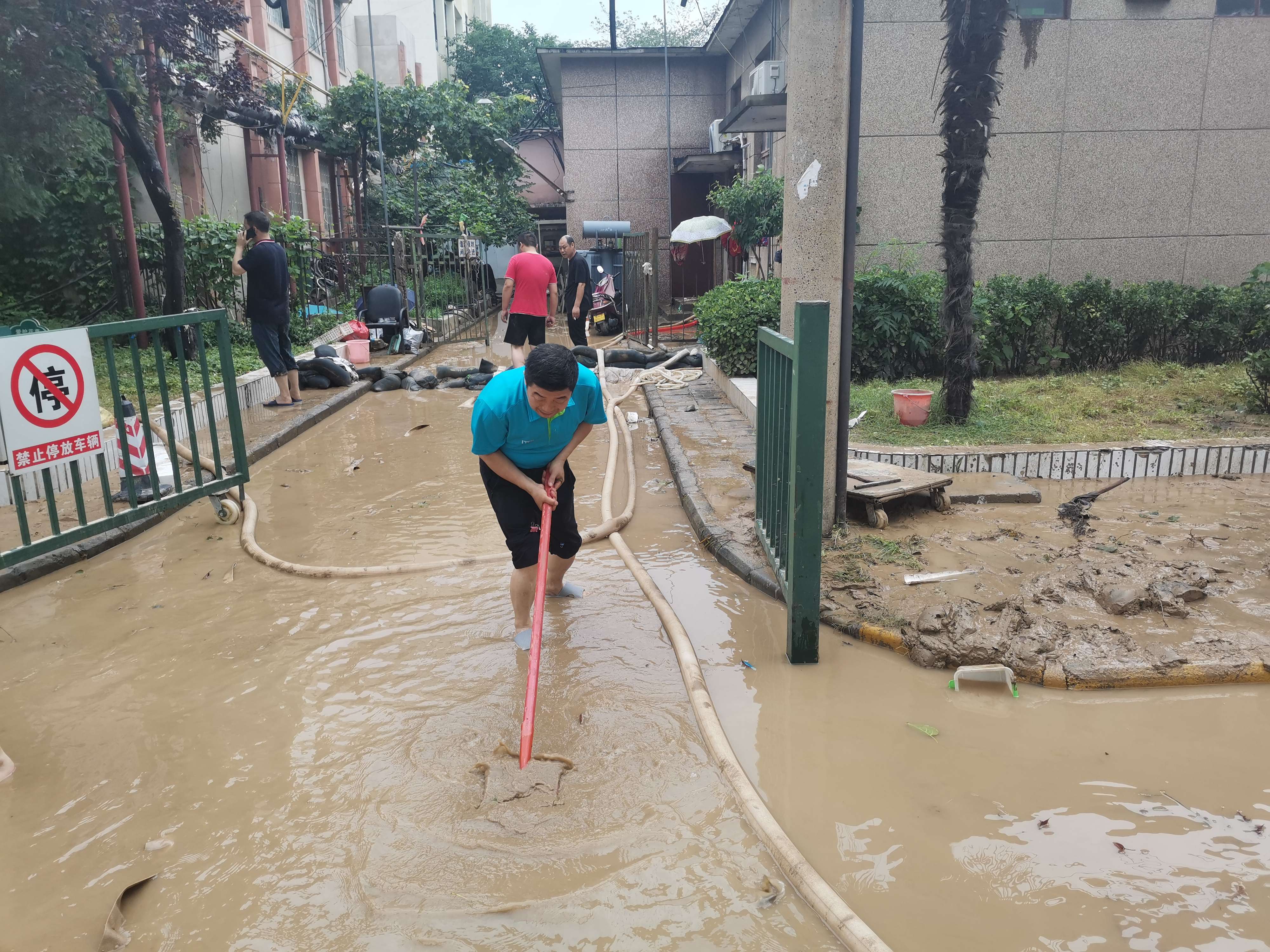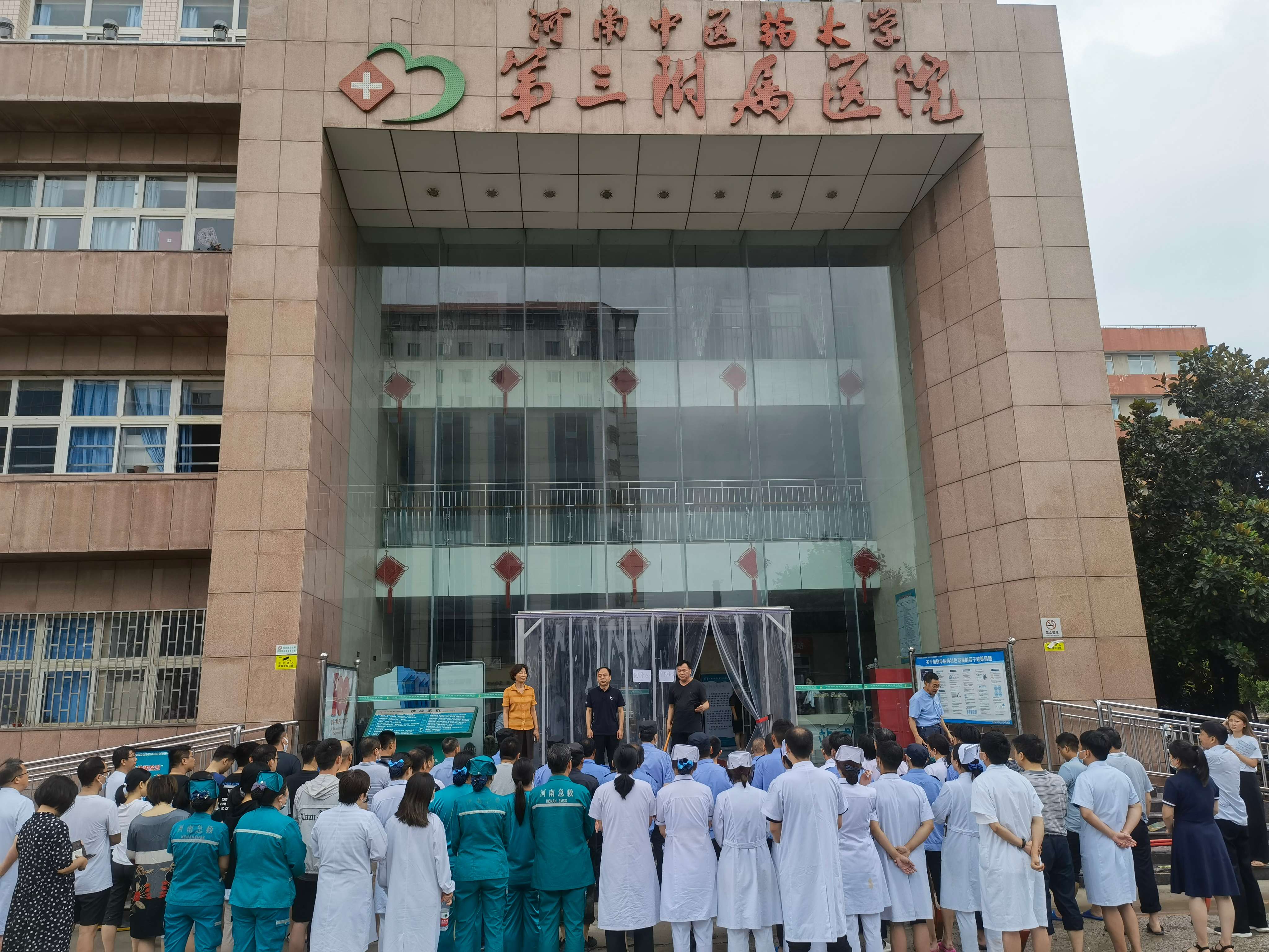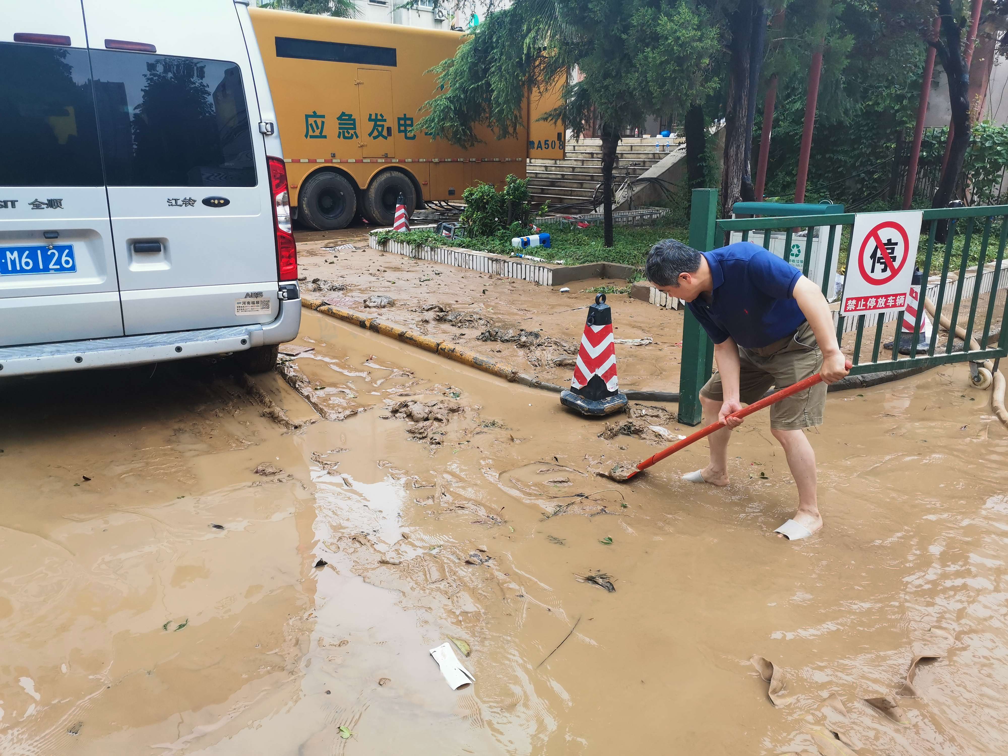会议结束后,在1号楼前现场召开院区清淤清障动员会,领导班子成员带领各职能部门和后勤保卫等部门人员参加突击活动。周书记要求,按照会议要求,一是立即组织清淤清障突击队,开展自救工作。二是要充分发挥党员先锋模范作用作用,党员干部示范引领,发扬伟大抗疫精神和抗洪精神。三是要发扬三附院人越是困难越奋进的精神,确保今天清淤清障完成,道路通常!