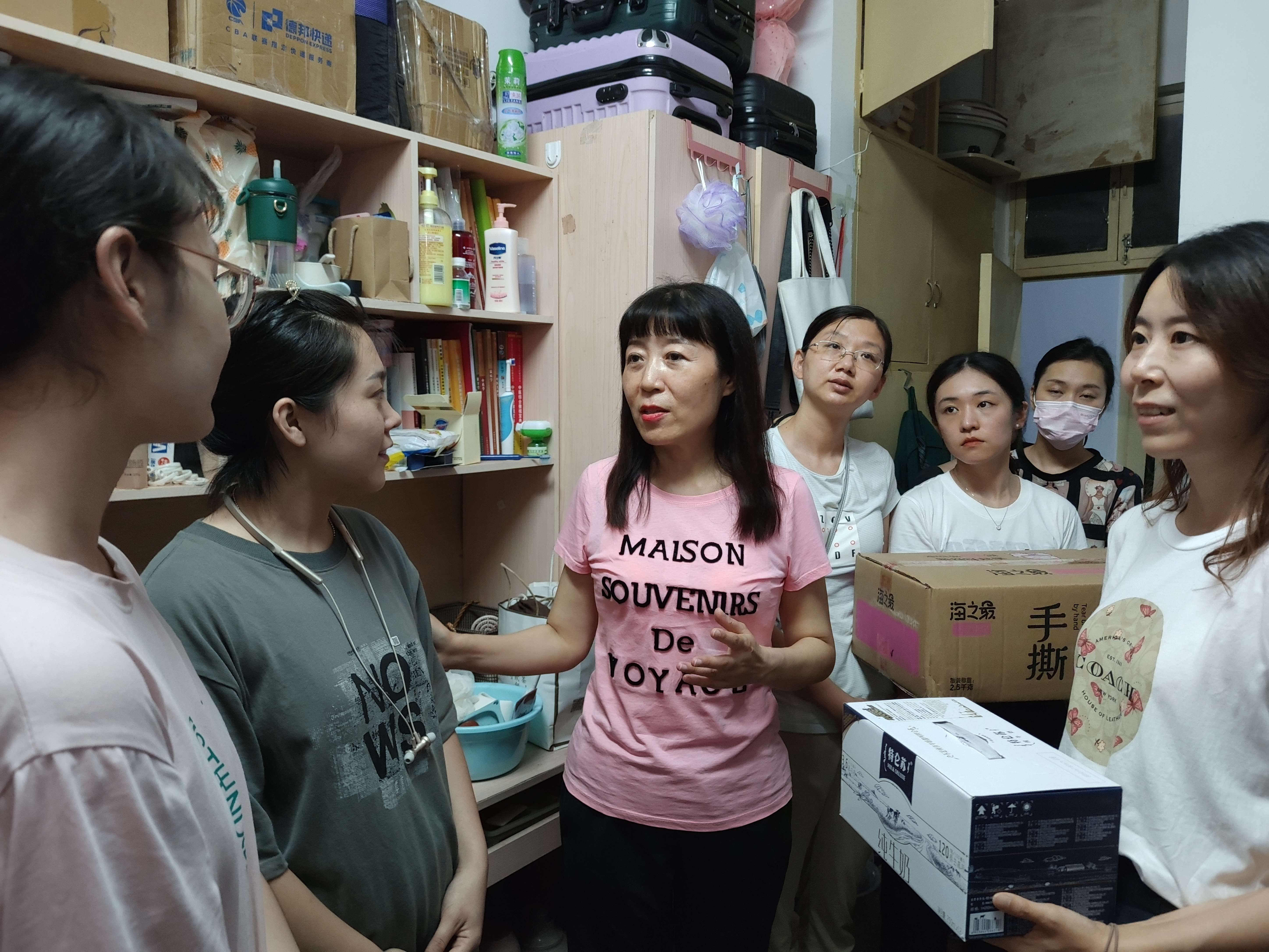 连日的暴雨,导致东明路校区和医院院区积水严重,一度停水停电,造成了严重损失。针灸推拿学院全体在郑辅导员看望东明路校区实习生,带来了牛奶、面包、纯净水等生活必需品,送去了院系的慰问和关心,鼓励大家互帮互助,团结协作,共渡难关。同学们积极响应号召,主动参与三附院院区和东明路校区的抗灾自救工作。7月24日,在外培训的辅导员,返回郑州后第一时间,赶往东明校区。针灸推拿学院焦钧副书记带领学院全体辅导员深入学生宿舍,看望受灾学生,关心现实困难,进行现场解决。