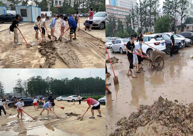 7月22日、23日暴雨初歇,我们的三附院实习生便积极响应医院、学校号召,纷纷加入到了灾后院、校恢复的队伍中去。 22日,2017级针灸推拿学本科班的同学(王耀锋、雍佳霖、金玉梅、杨攀峰、秦研研、高渊博、吴显、王帅子、商远达和王振洋等)及2019级针灸推拿学专升本班的同学(冯文广、王浩、张承乾、陈兆阳、徐伟杰、武宁欣、段旭龙、陈洁和许琳等),与医院职工一起铲除停车场里、病房楼前、综合楼下的道路淤泥,清理学校图书馆附近的路面积水,保证了车辆、行人、医患的顺畅通行。23日,国际教育学院2017级的实习生组成了7人志愿者小分队(晋世威,刘朋良,安金琪,苗丹梦,李善政 雷诗赟,王荷颖)在东明校区,从四号宿舍楼前至学校家属院门前的道路上用铁锹等工具挖散凝固结块的淤泥,集中到沿路两侧堆放,方便推土机完成校区内的路面清扫作业,协助校区秩序尽快恢复正常。