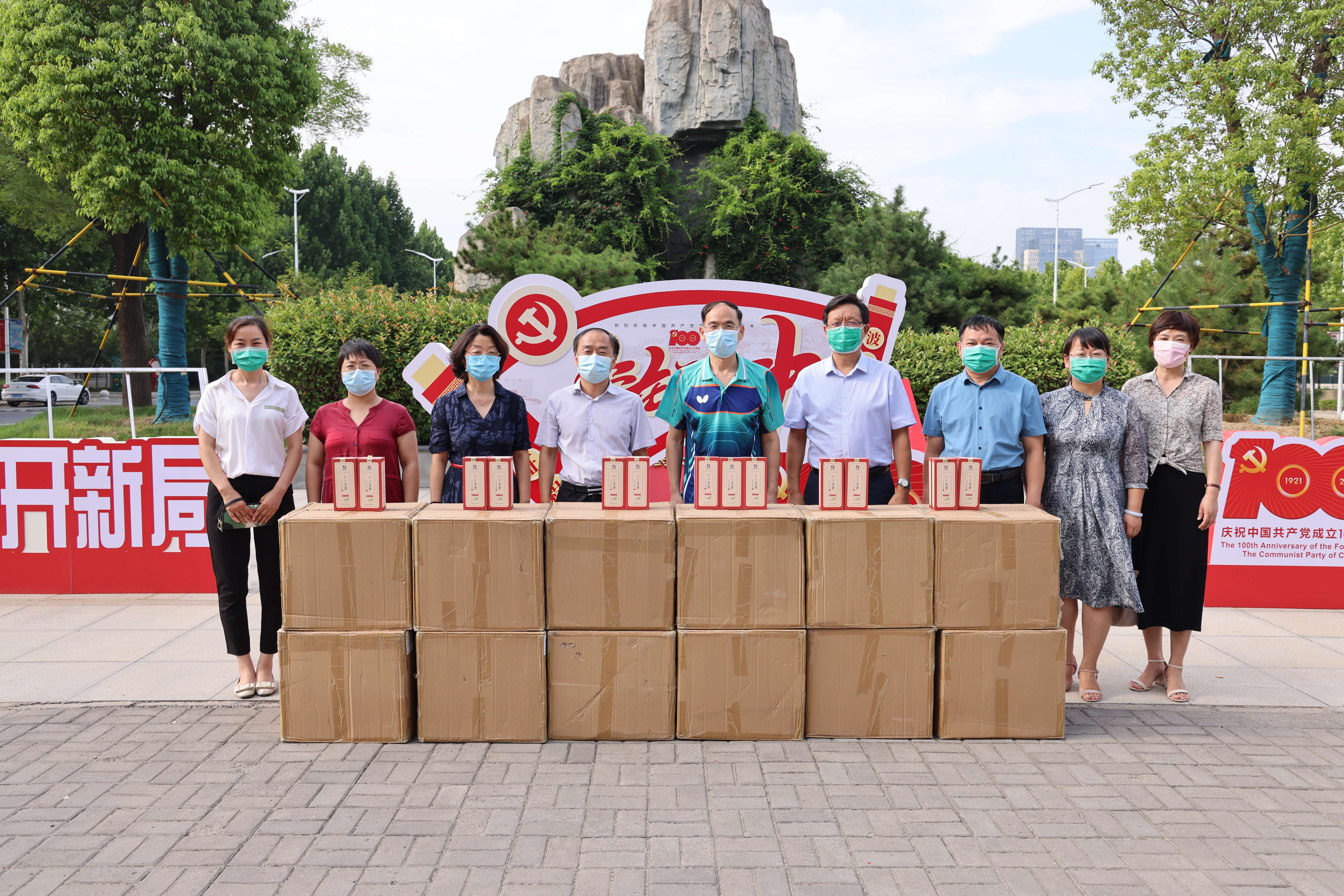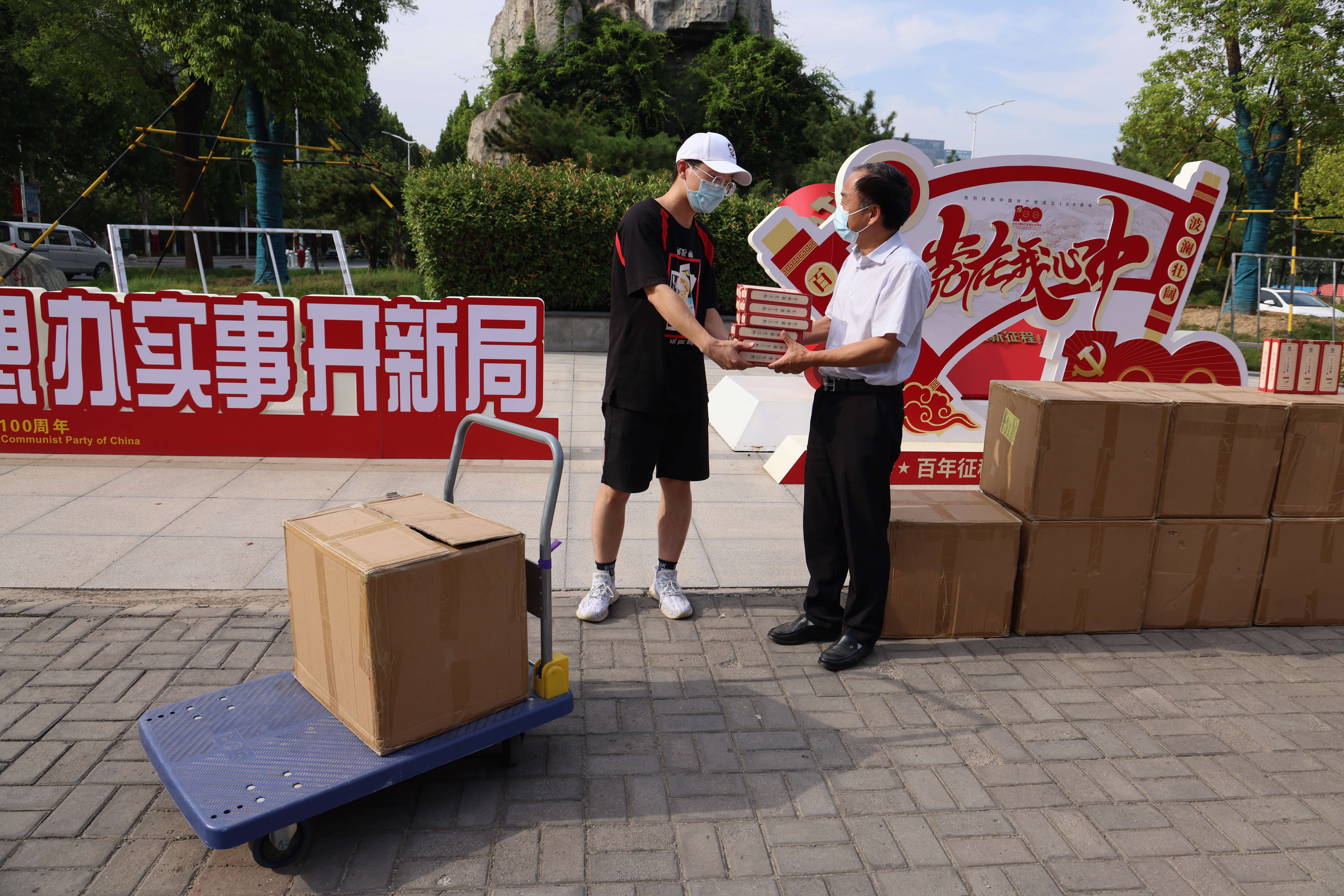仪式最后,周运峰代表医院向学校捐赠40箱艾条,张加民接受捐赠,并安排将防疫物资分发给龙子湖校区、东明校区在校师生。