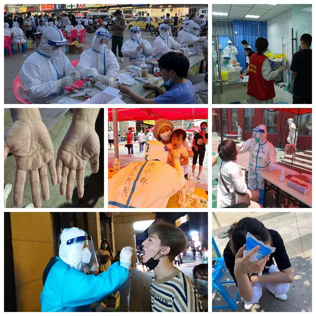 面对孩子,他们温柔引导;面对老人,他们耐心加倍;面对不懂,他们专业讲解;面对不适,他们坚守强忍…有的舍小家为大家,夫妻二人同战疫;有的中暑晕倒,醒了之后再继续;有的累了困了,小憩之后再开始, 但更多是汗流浃背、口罩把美丽的脸庞勒出深深地迹痕,和那一双双被汗水泡成褶皱的手。