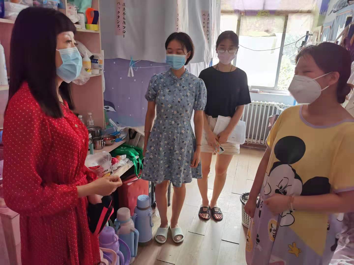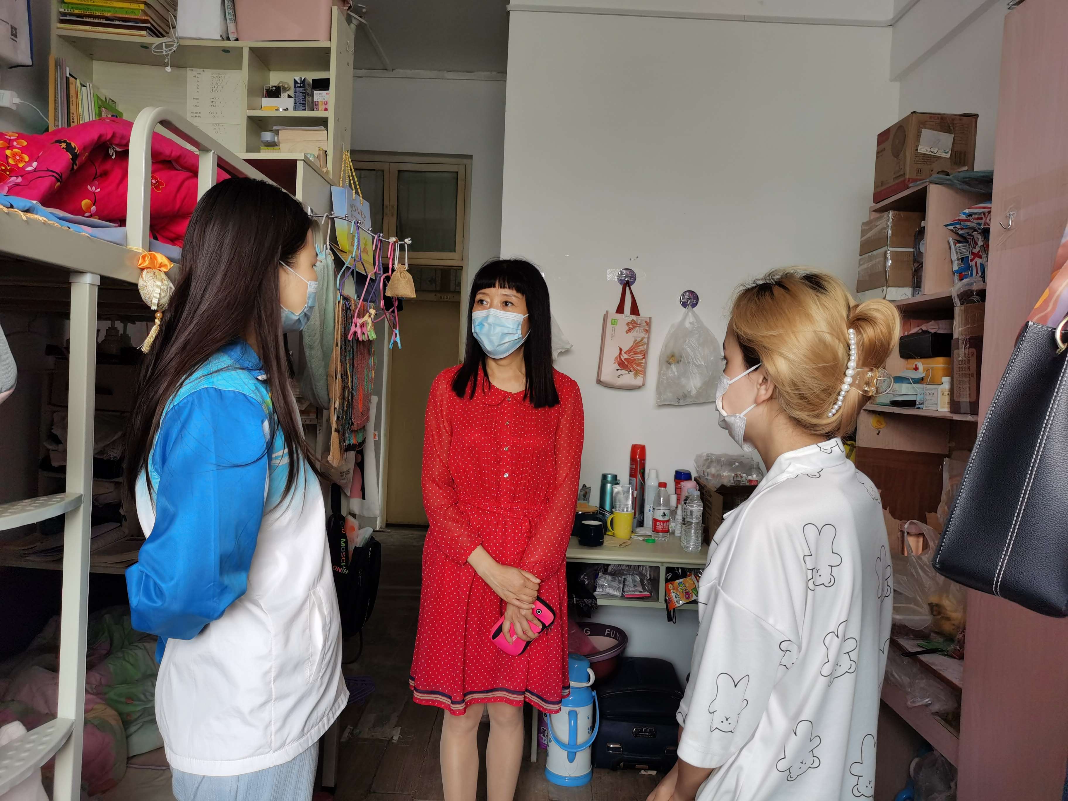 本网讯(通讯员 周凌 )2021年8月15日上午,东明校区疫情防控值班的学院带班领导、我院党委副书记焦钧带领疫情防控值班教师、院团委副书记周凌深入东明校区学生宿舍进行走访慰问,了解在校学生目前的学习生活情况及身心健康状况。