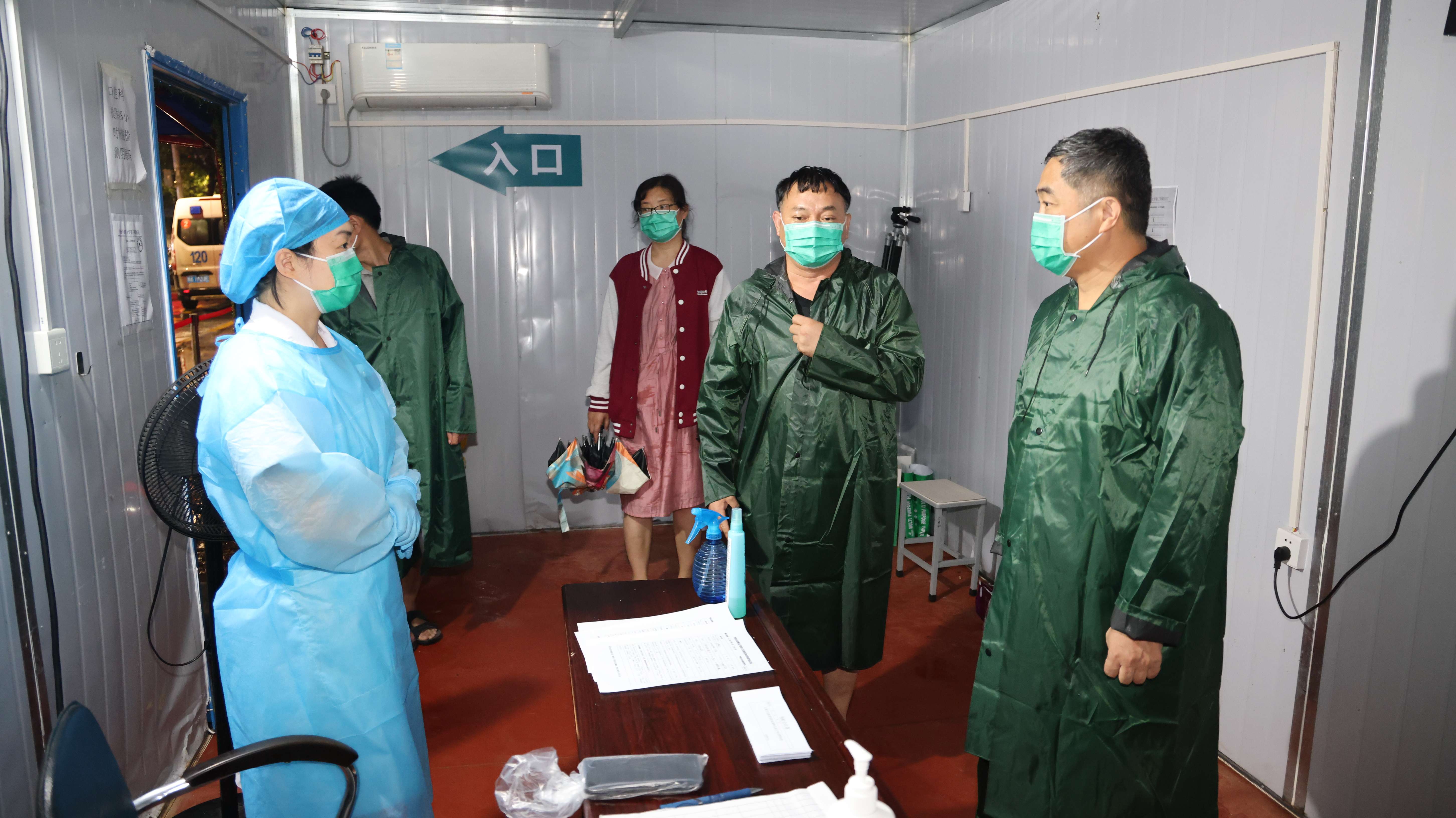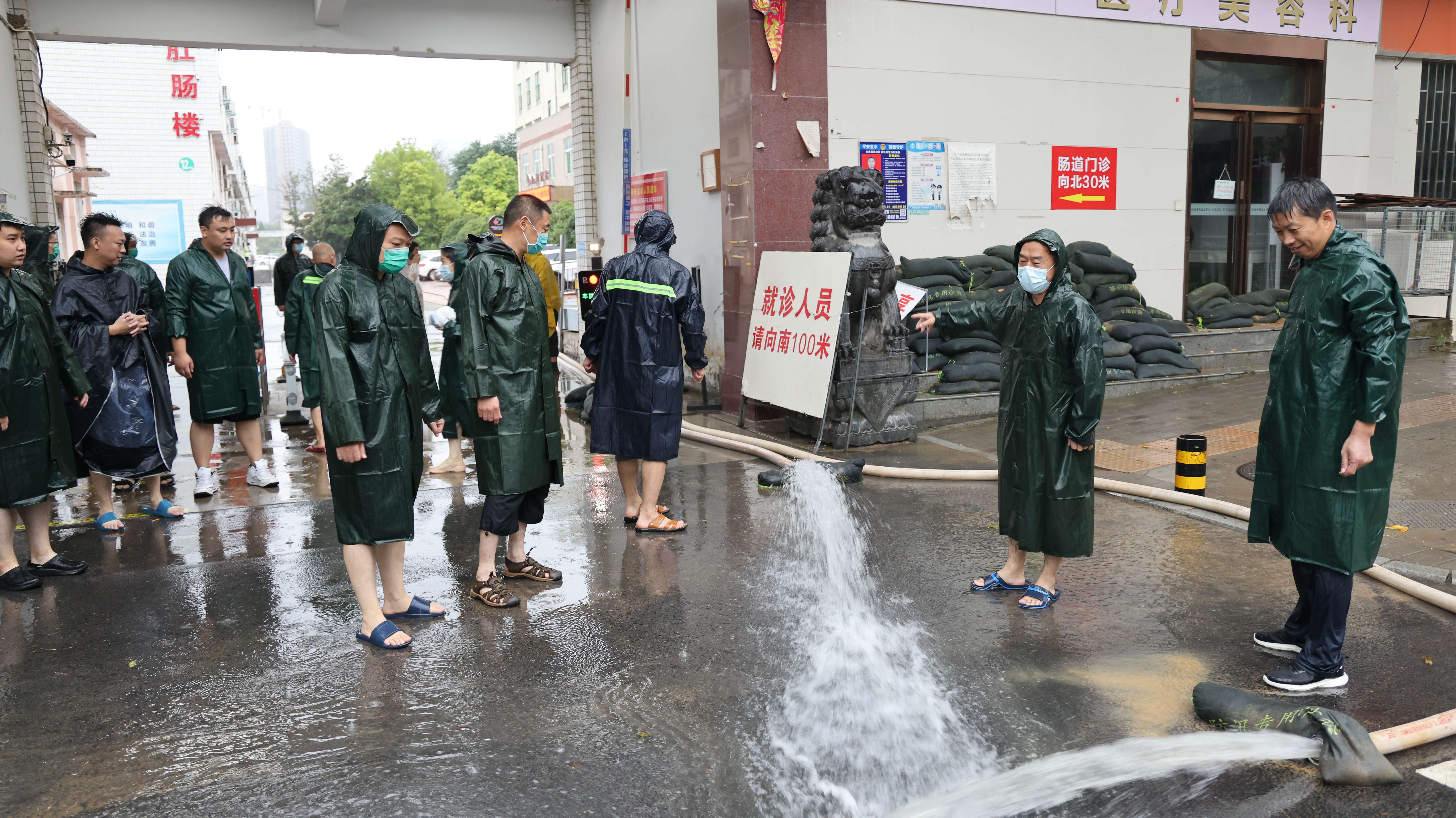 8月21日下午,我院党委书记周运峰,党委副书记、院长张大伟,副院长张进一,党委委员、党委副书记高翔、王志超,党委委员、工会主席蔡庆春等院领导带领医院相关部门负责同志先后多次视察院区,对院区各卡口及易积水地点进行风险排查,检查防汛工作准备情况,并召开现场办公会,对防汛工作进行指导部署。
