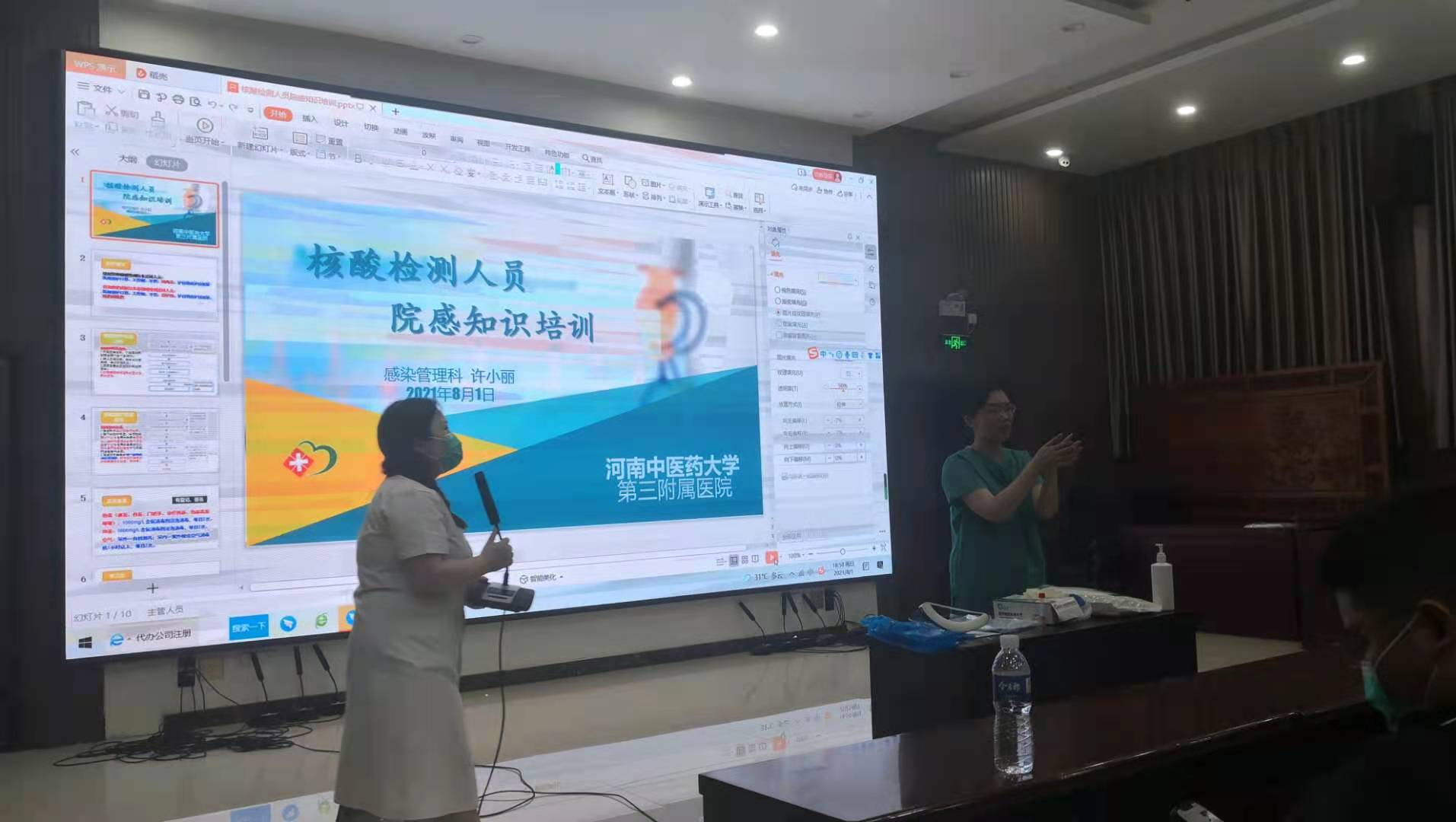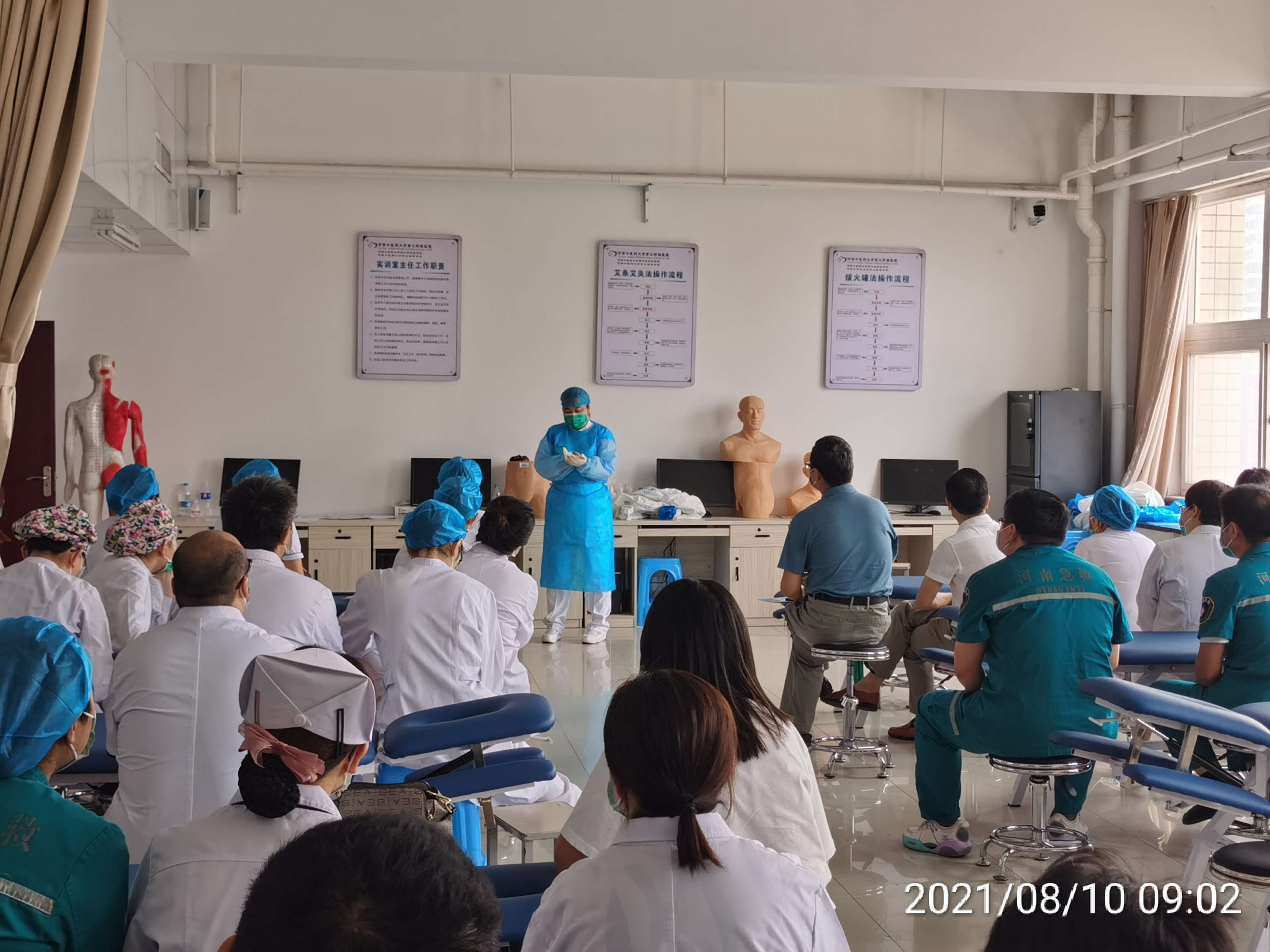 截止8月18日,我院疫情防控持续培训考核小组已完成了1500余人次防护用品穿脱技能培训考核;约800余人完成13000余小时“人民好医生”“掌上华医”手机APP网络学习;组织全院医务人员线上观看河南省内录制的疫情防控讲座10余场;并通过微信群、钉钉群不定时推送感染防控知识。同时,完成全院各临床科室第一轮防护用品穿脱督导检查任务。