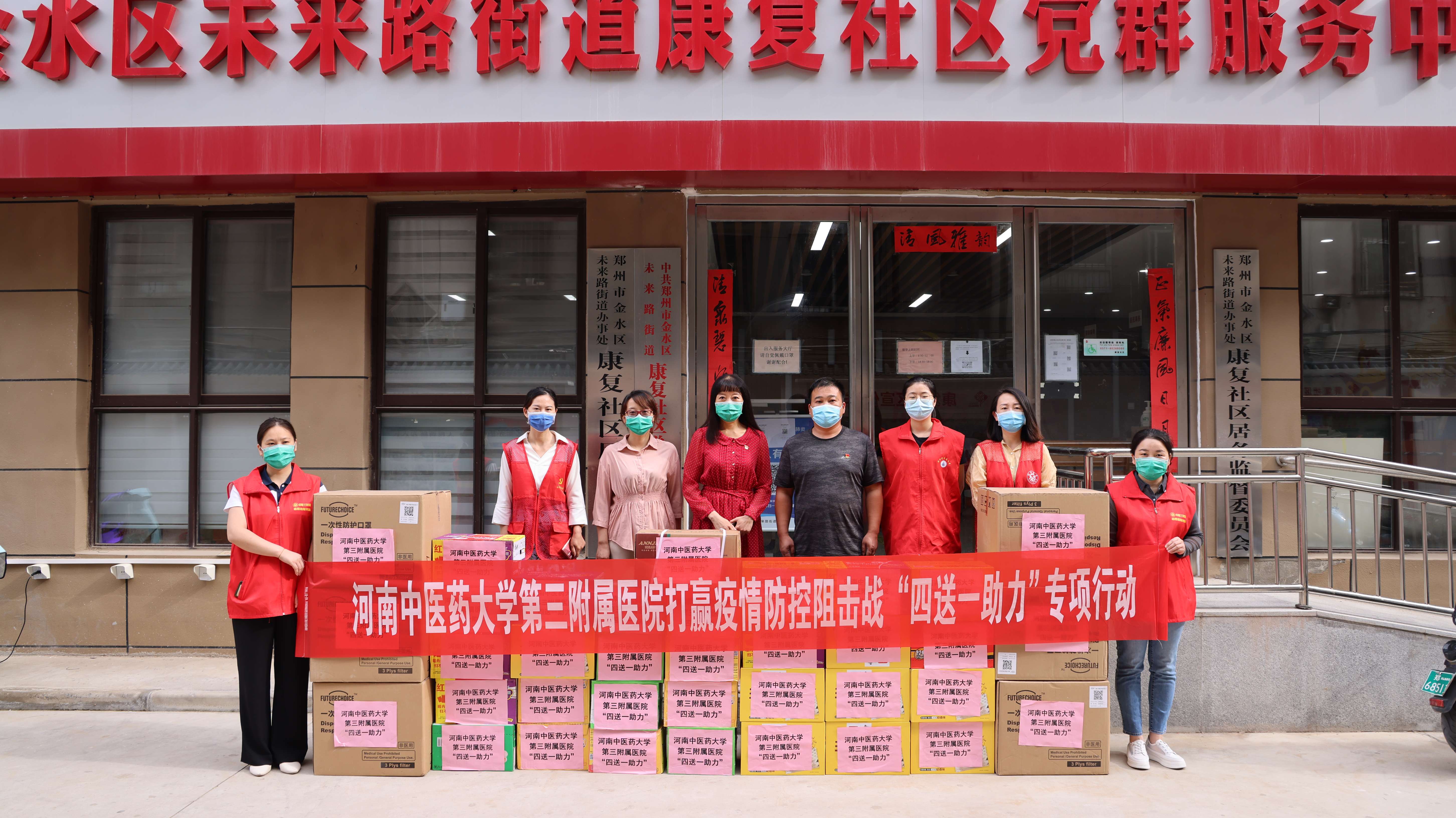 本网讯(通讯员任聪颖) 为深入学习贯彻习近平总书记关于疫情防控工作的重要指示精神,全力打好疫情防控阻击战,我院积极响应省文明办关于在全省开展文明单位“四送一助力”专项行动的通知要求,积极主动与金水区未来路街道康复社区联系,以实际行动向奋战在抗疫第一线的社区基层工作人员助力加油。