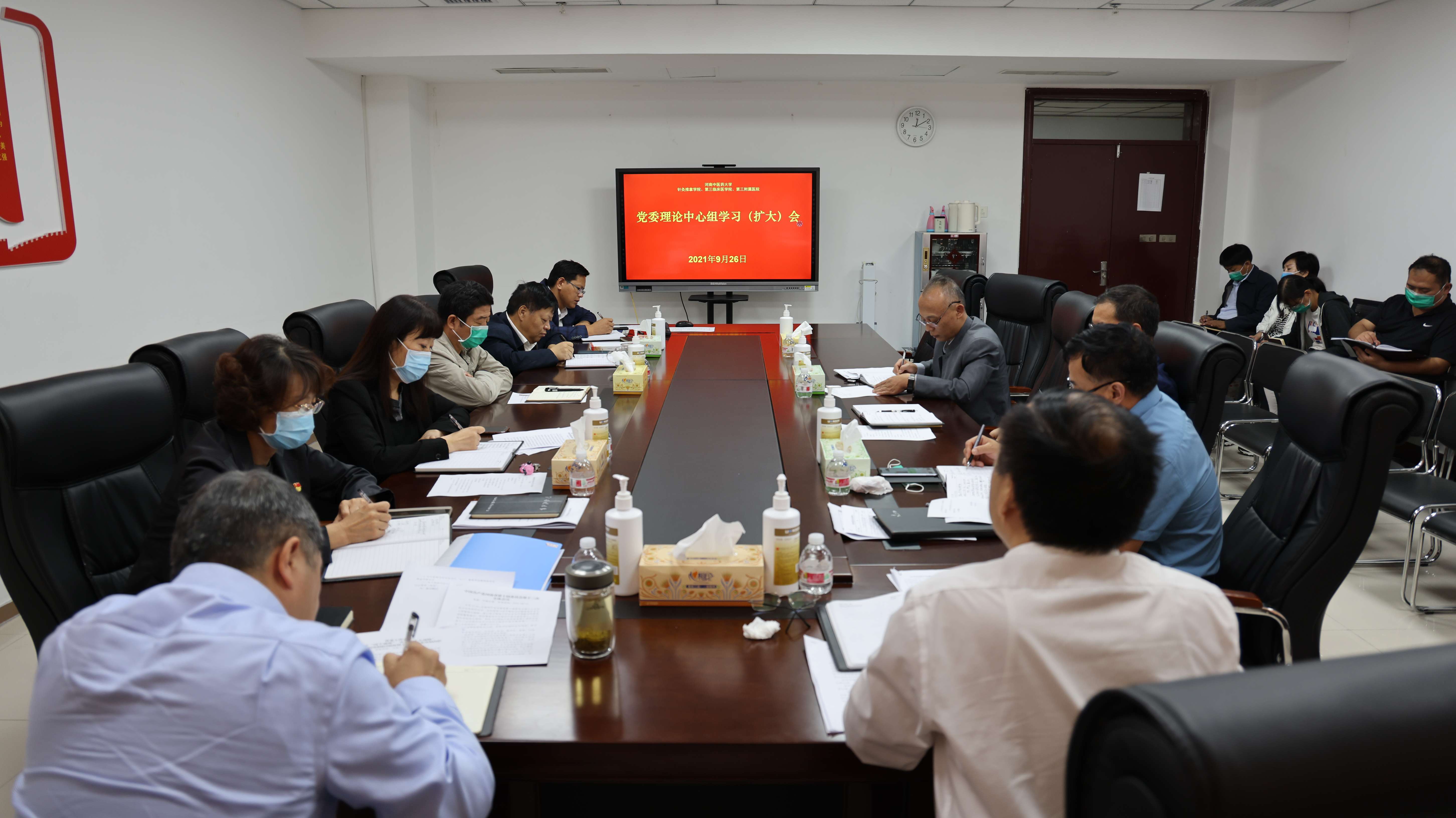 本网讯(通讯员潘向昆) 2021年9月26日上午,我院党委理论中心组在综合楼1106会议室召开扩大学习研讨会。院党委理论中心组成员和各党总支、直属党支部书记、相关部门办主任参加学习交流。党委书记周运峰主持学习会。