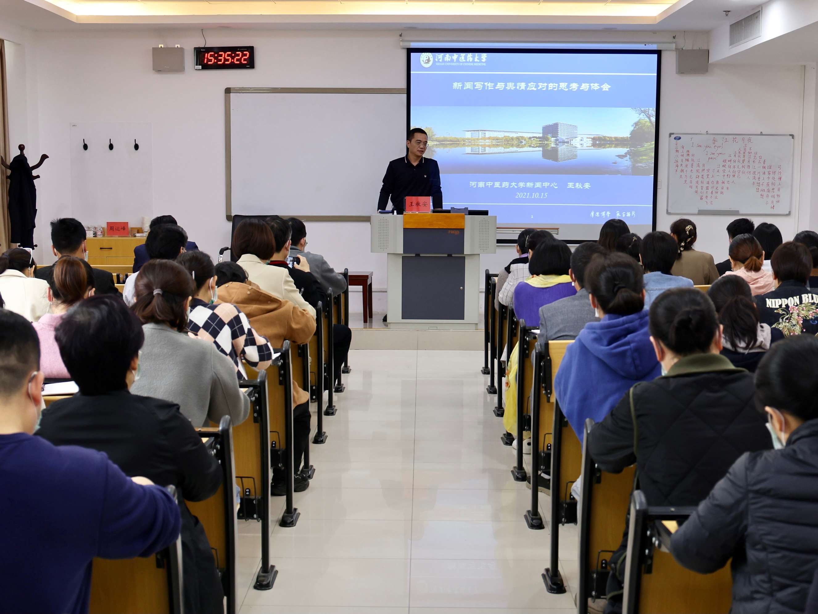 学校新闻中心主任王秋安作专题培训