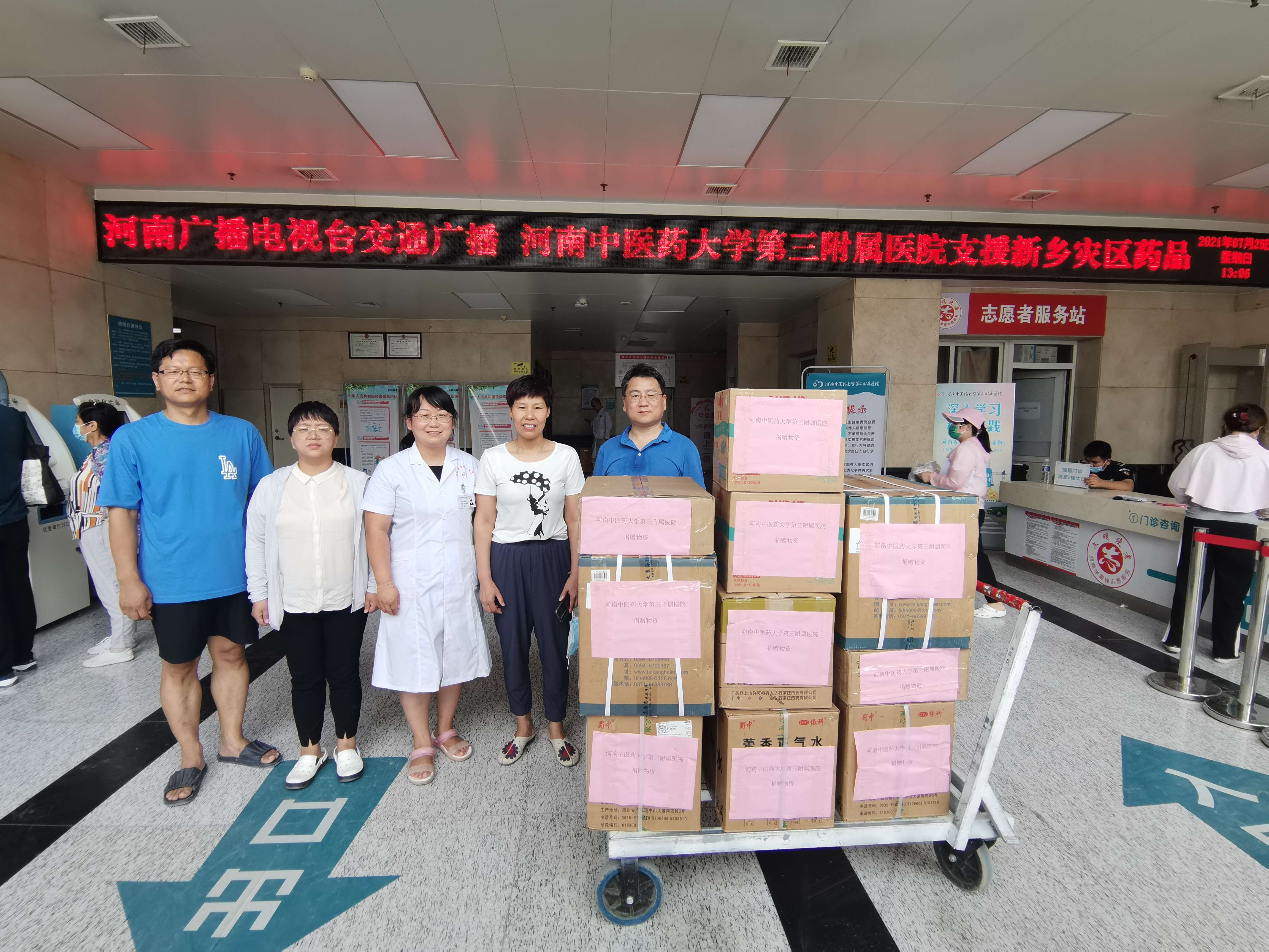 近日,河南省遭遇极端强降雨天气,郑州、新乡等地受灾严重。为紧急驰援河南省抗险救灾工作,彰显医院服务社会责任,在得知新乡洪涝灾区急需药品时,我院联合河南交通广播,迅速行动,统筹安排,第一时间向新乡受灾地区捐赠急需药品等物资总价值近1.5万元,用于保障受灾群众应急所需、支持灾后防疫等。