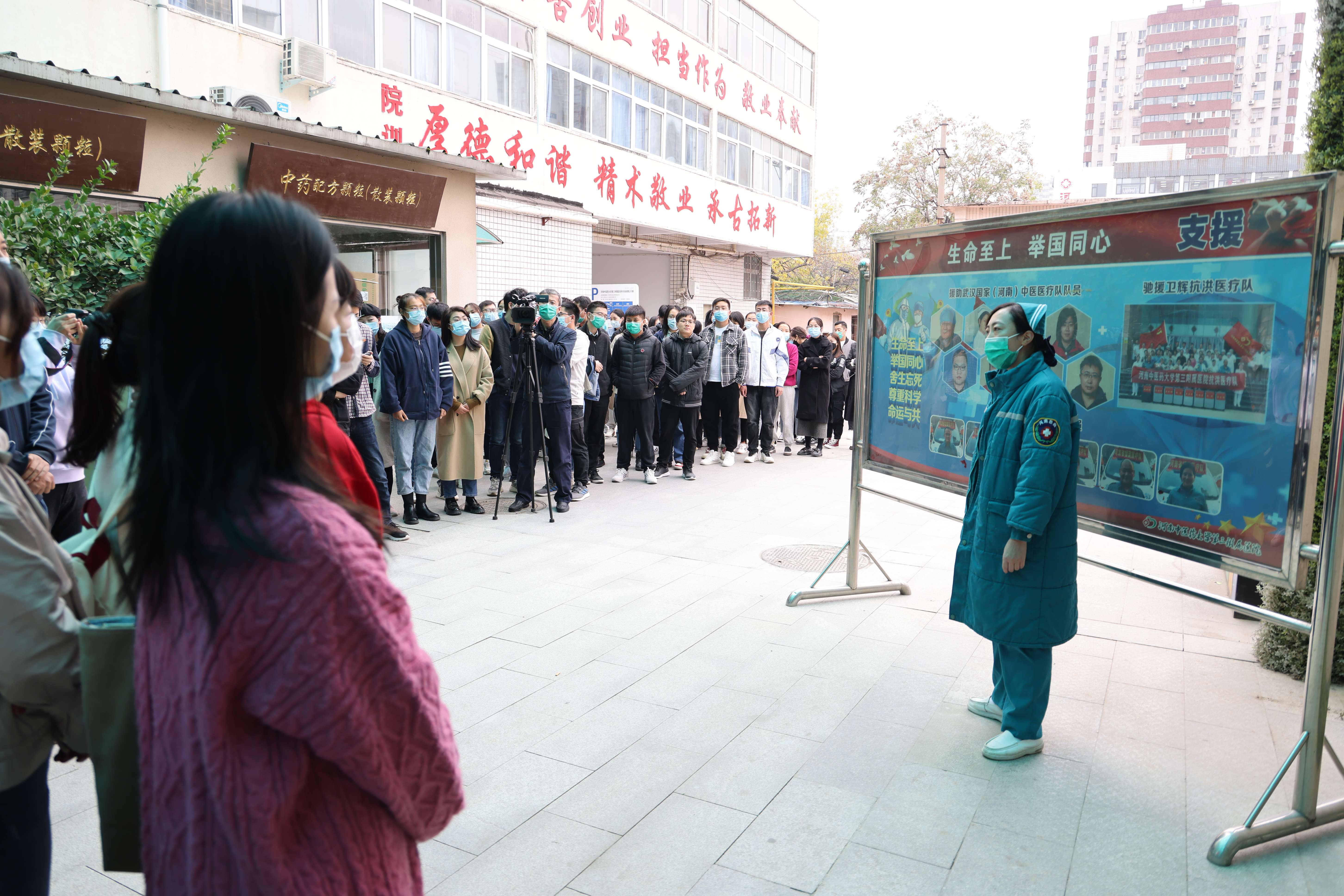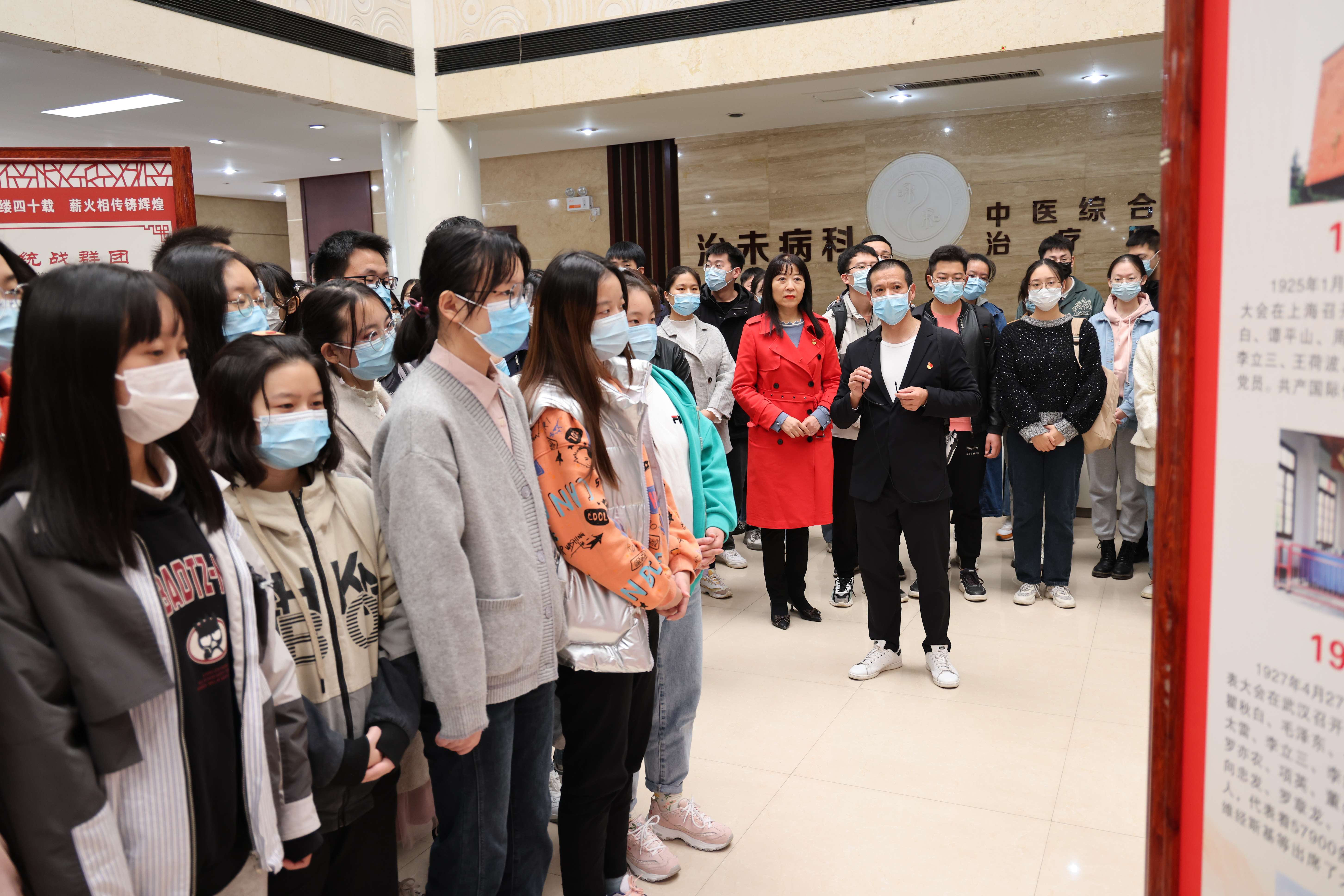 本网讯(通讯员吉云鹏) 为进一步贯彻落实习近平总书记关于“大思政课”建设的重要指示精神,全面落实《关于新时代加强和改进思想政治工作的意见》,不断推进“把灾难当教材 与祖国共成长”主题教育活动,扎实做好新生入学教育,2021年10月19日,第三临床医学院组织学生参观党史、院史及抗疫抗洪精神图片展,750余名来自第三临床医学院的本专科生、研究生同学参加图片展。为进一步教育引导广大学生在百年党史中激发爱党爱国热情,在抗洪抗疫大考中培养爱院荣院意识,三临床特别安排了亲历抗洪抗疫的一线教职工担任讲解员,通过生动讲述与同学们共同回顾中国共产党成立100周年的光辉岁月,学院的发展历程,以及广大教职工生勠力同心战疫情、抗洪水的光荣事迹。针灸推拿学院党委副书记焦钧、第三临床医学院全体辅导员参加本次活动。