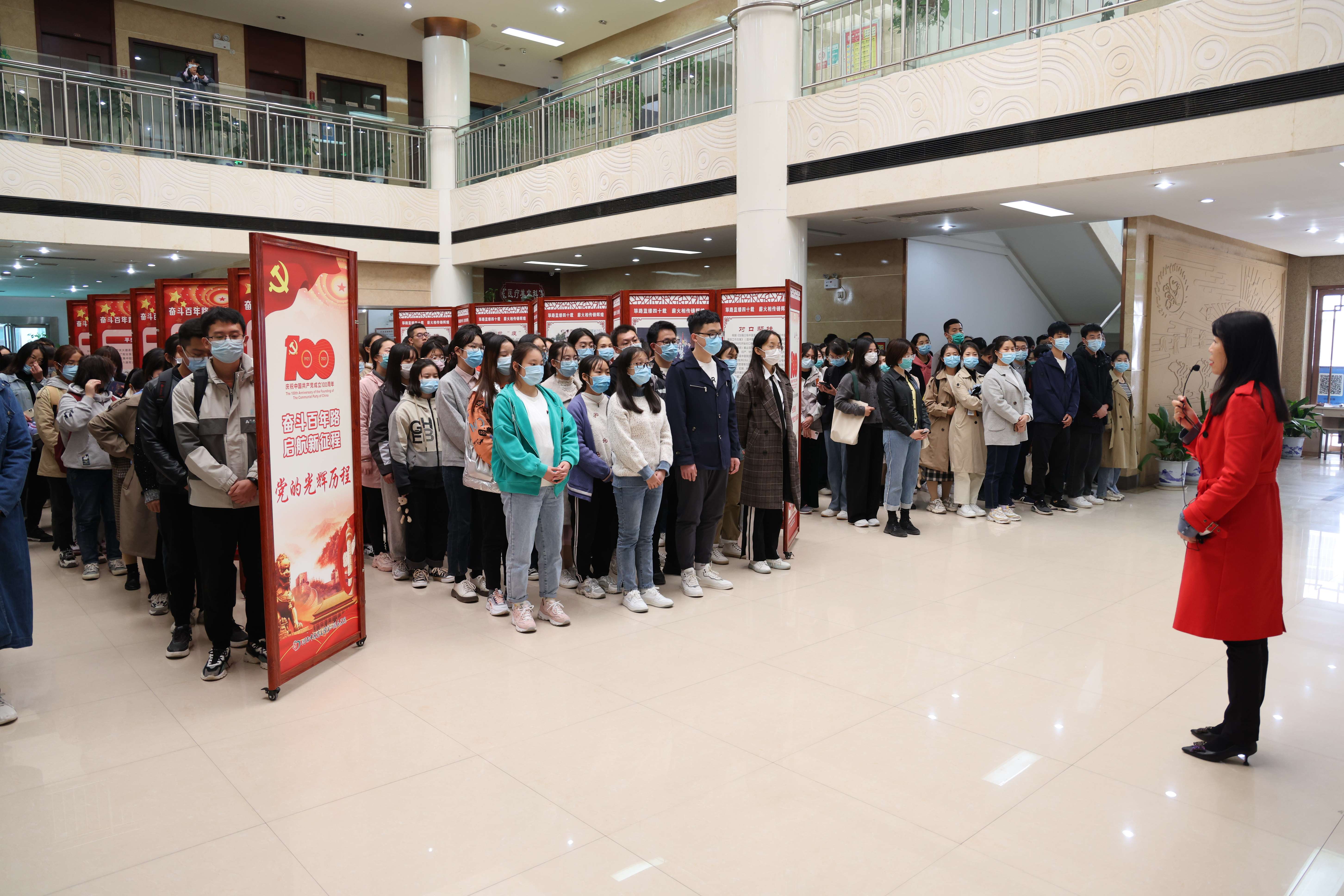 本次展览共分为《奋斗百年路,启航新征程——党的光辉历史》《筚路蓝缕四十载,薪火相传铸辉煌》《抗洪——冲锋在一线 抗汛我先行》《抗疫——生命至上 举国同心》四个部分,对中国共产党历次党代会、重要会议、活动及历史意义,第三临床医学院的发展历程、办院特色成就、教学科研、学生工作、对外交流、对口帮扶及抗洪战疫等方面情况进行了详细展示。三附院机关党总支书记门闯、儿科护士长王进、急诊科护士长王亚春作为讲解员,结合图片展示内容和个人的抗洪、抗疫的亲身经历,进行了生动精彩的讲述,为同学们带来了一堂别开生面的思政课。
