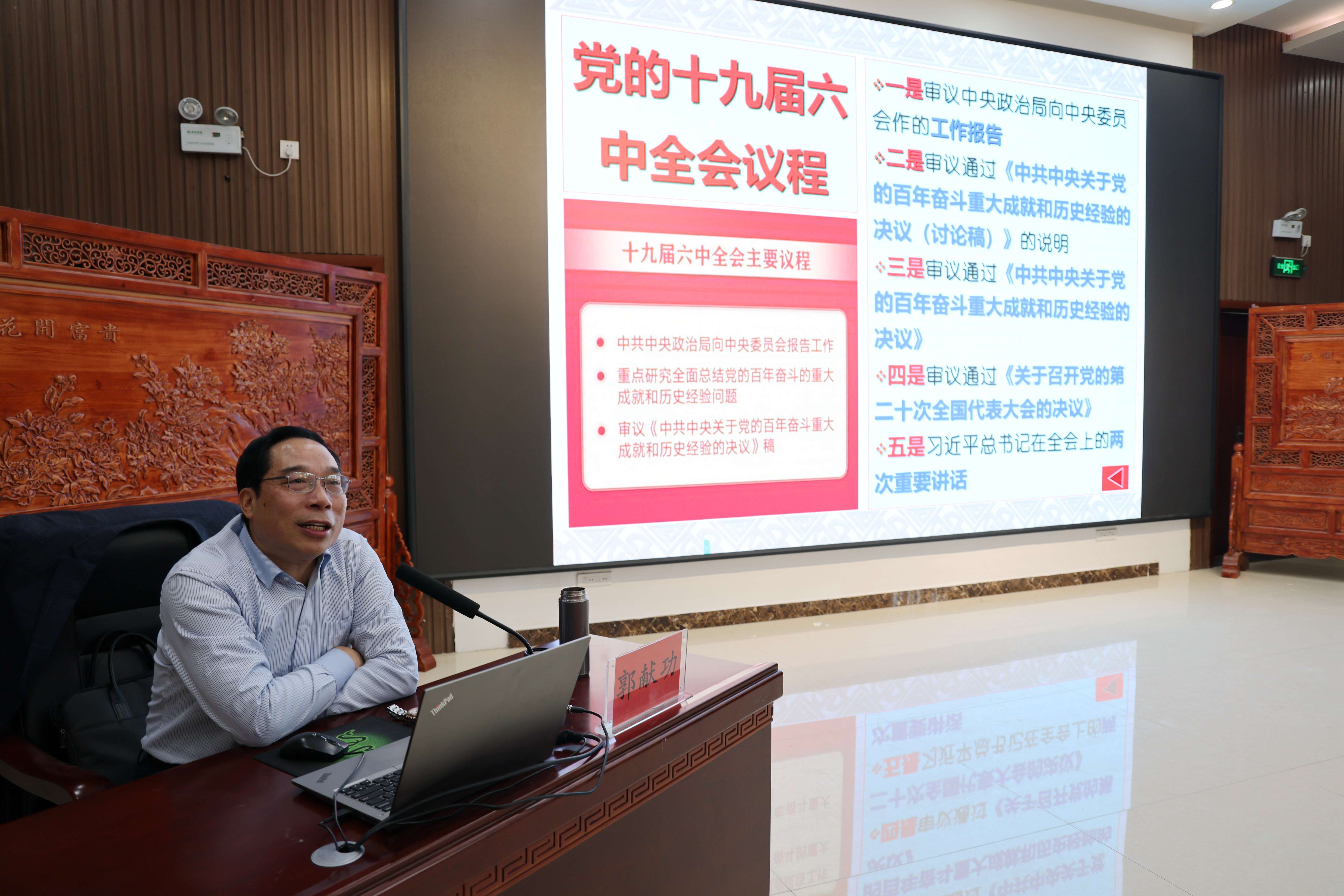 郭献功首先讲解了“全会”的概念和历次全会召开的意义,从本次全会充分肯定了中央政治局一年工作、系统阐述了四个时期的重大成就、概括了理论创新的三次飞跃、深刻总结了历史意义和宝贵经验、全面吹响了建设强国的前进号角、明确要求以优异成绩迎接二十大等六个方面对全会精神进行了系统解读。他运用生动鲜活的案例、数据、图表进行讲解,整个报告既有深厚的理论高度,又有现实的具体剖析,内涵丰富、深入浅出,对于进一步学习领会全会精神,进一步深刻认识党的十八大以来取得的历史性成就、历史性变革、深刻认识中国共产党百年奋斗的历史意义和历史经验具有重要的指导意义。