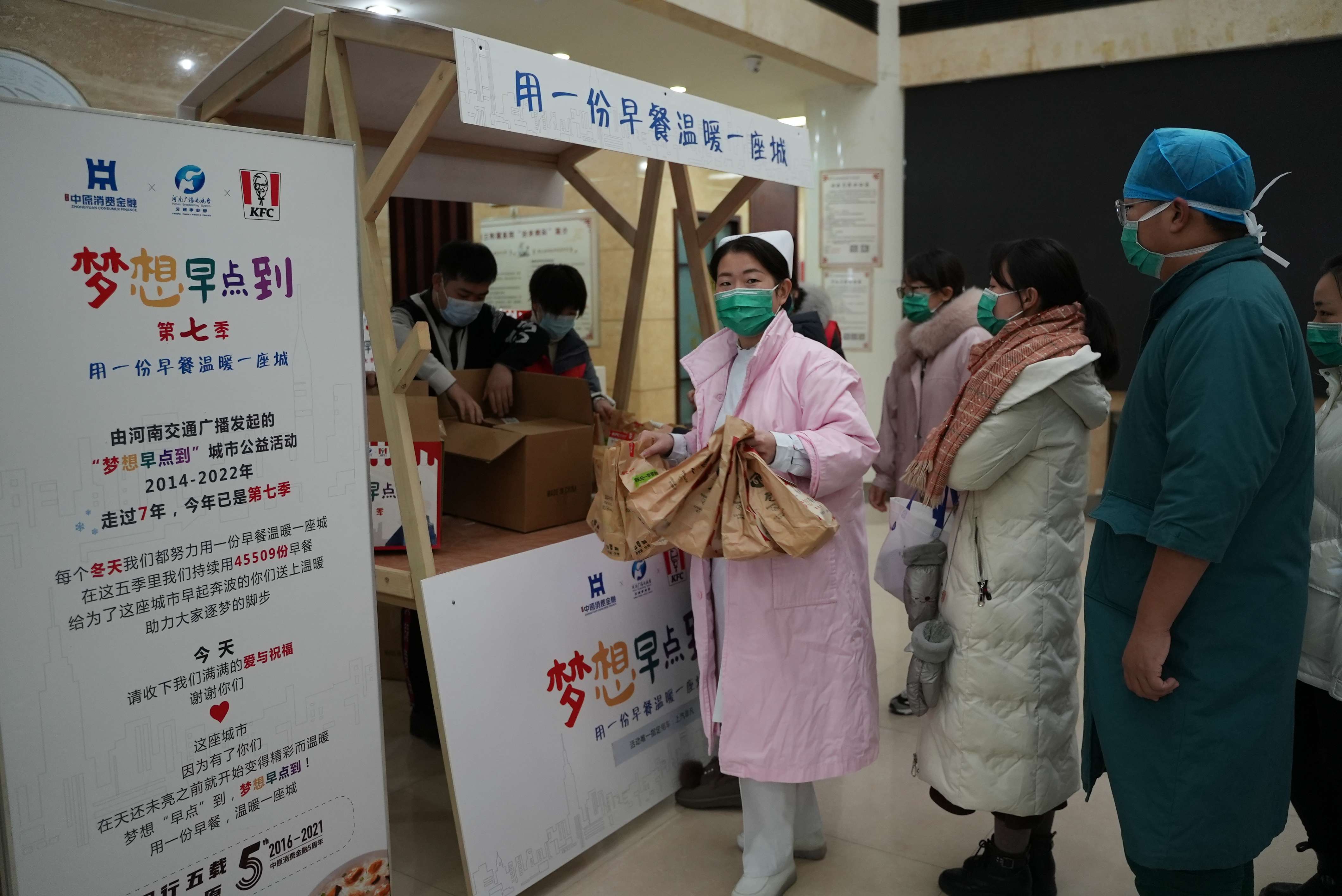 本网讯(通讯员 孙璐) 美好一天从一顿温暖的早餐开始。2021年12月28日清晨,由河南交通广播联合中原消费金融和肯德基发起的第七季《梦想早点到》“用一份早餐 温暖一座城”爱心公益活动走进河南中医药大学第三附属医院,为我院值夜班而无暇买早餐的医务工作者和后勤保障人员送上一份暖心早餐。医院纪委书记刘会勋参加派送活动。