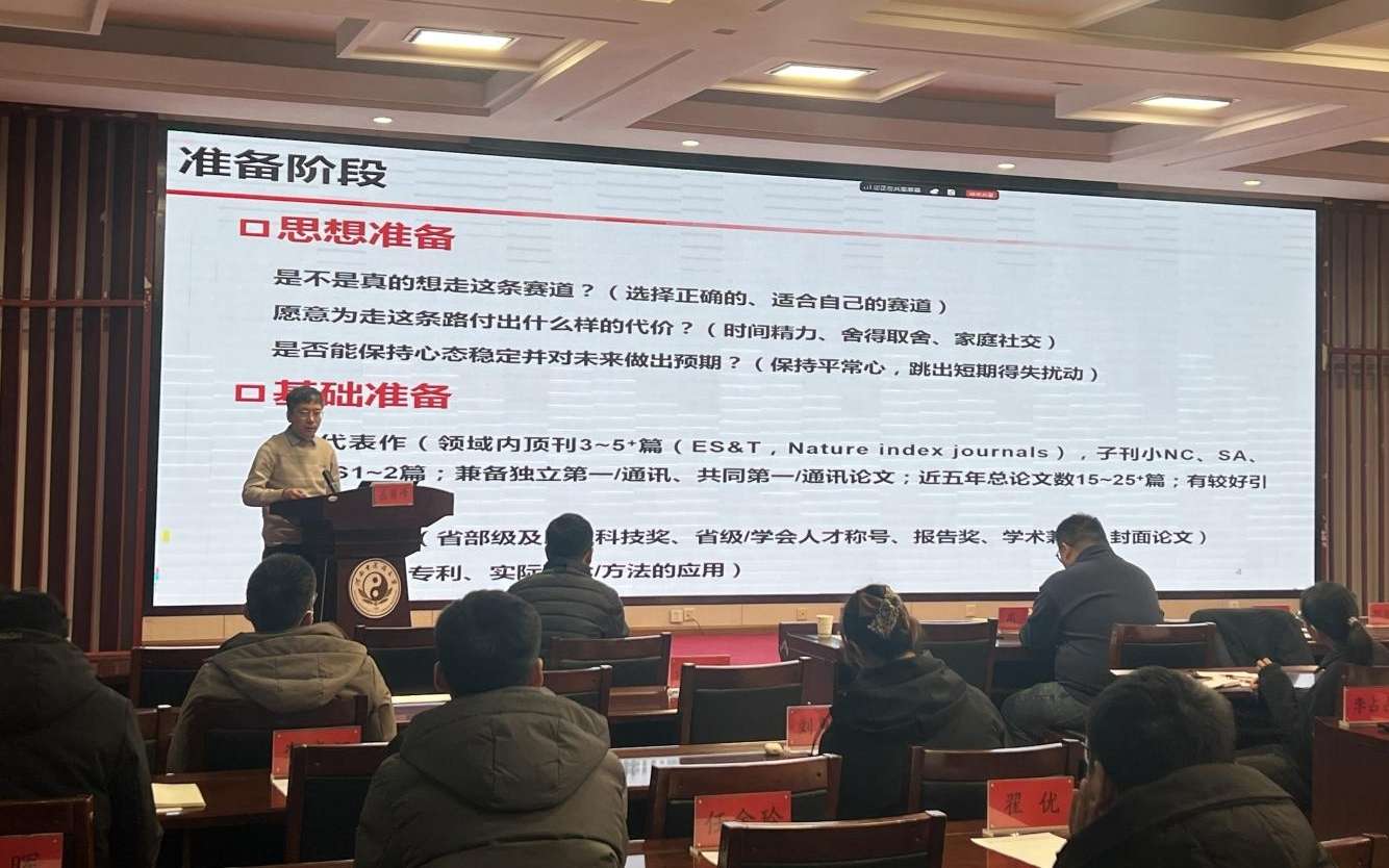 岳慧峰教授作《国家自然科学基金青B项目申报心得交流》专题分享。岳教授围绕青B项目申报的政策要求、选题技巧、标书撰写、评审要点等核心内容,结合自身丰富的申报与评审经验,用详实的案例拆解了标书撰写中的常见问题与规避方法,重点强调了选题的创新性、研究方案的可行性及逻辑完整性的重要性。在互动交流环节,岳教授针对现场青年学者提出的申报疑问逐一解答。