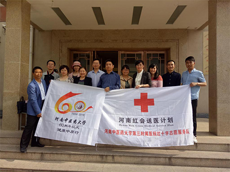 在世界红十字日到来之际,为扎实做好省红十字会2018年“结伴同行脱贫路”和“红会送医计划”专项行动,我院积极响应省政府办公厅《关于实施基层卫生人才工程的意见》、省脱贫攻坚领导小组《关于持续推进脱贫攻坚工作全面提升的意见》和省红十字会五届五次理事会精神号召,于5月8日组织两支专家医疗队分别深入柘城县岗王镇、获嘉县大新庄乡进行送技术、送知识、送义诊精准扶贫活动。