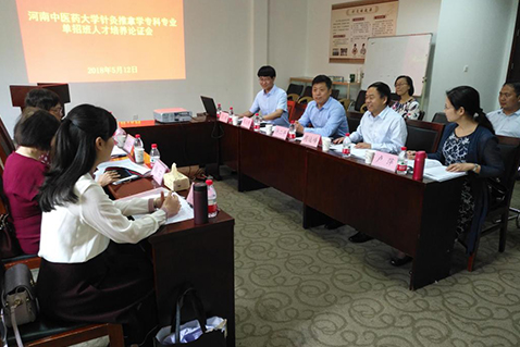 2018年5月12日上午,针灸推拿学专科专业单招班人才培养方案论证会在东明校区治未病中心一楼会议室召开。会议邀请安徽中医药大学教学评价与教师发展中心副处长韩茹教授,湖南中医药大学林亚平教授,河南省中医管理局科技教育处马高峰处长,河南中医药大学基础医学院曹珊副院长作为特邀专家。河南中医药大学许二平校长,教务处卢萍副处长,我院党委书记周运峰、院长张大伟、副院长胡斌,院办、教学办、学工办工作人员及教师代表出席了会议。会议由副院长胡斌主持。