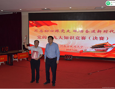5月23日下午,我院在学校开展的“不忘初心跟党走,砥砺奋进新时代---党的十九大知识竞赛活动”中荣获竞赛第一名。