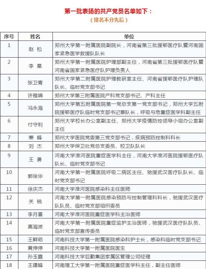 第一批表扬的共产党员名单