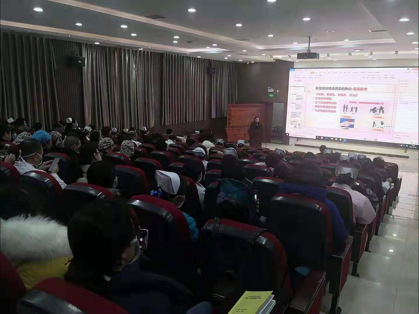 状病毒感染防控及发热预检分诊病例上报流程等培训,医院新型冠状病毒感染的肺炎疫情防控工作组各组成员参加培训。培训由感染管理科许小丽和感染性疾病科、疾病预防控制科单慧娟主讲。