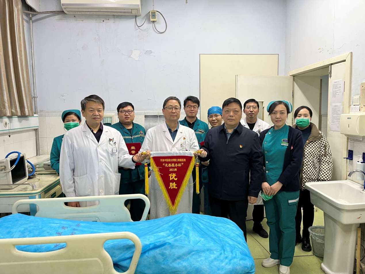 本网讯(通讯员王亚春) 为进一步提高我院急诊120服务质量和服务水平,巩固“人人是窗口”优质服务活动成果,规范急救流程,持续检验急诊科医护人员的急救知识与技能,加强急救质量与内涵建设,2021年11月25日下午,急诊120开展2021年“友善服务杯”岗位技能竞赛,院纪委书记刘会勋出席并指导。外科党总支书记、外科主任焦纯杰应邀出席。院纠风办、精神文明办、工会等部门负责人参加技能竞赛活动。