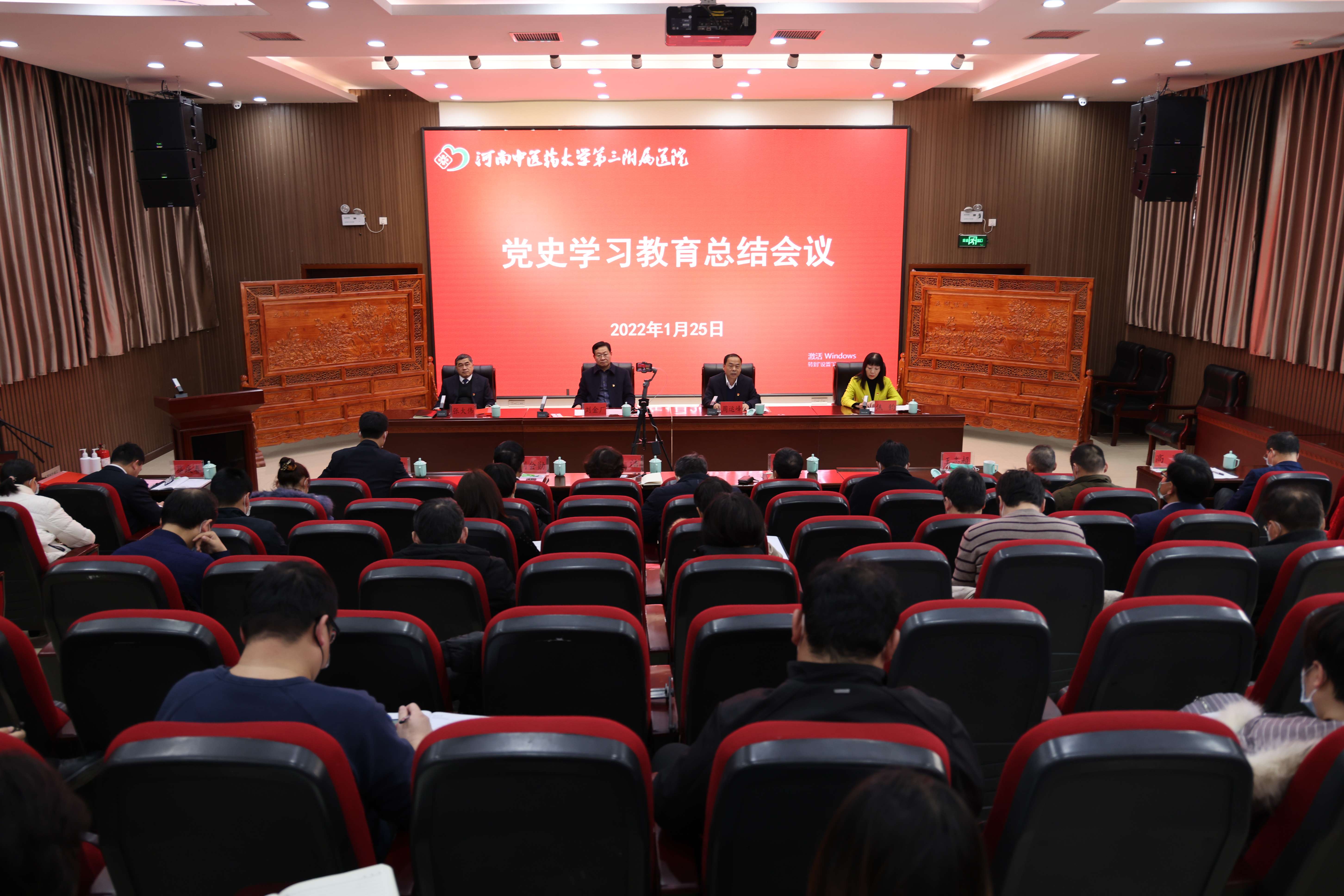本网讯(通讯员潘向昆 图田辉) 历史照亮未来,奋斗成就伟业。2022年1月25日下午, 我院在学术中心召开党史学习教育总结大会。按照疫情防控要求,此次会议召开采取线上线下两种方式,校党委委员、宣传部部长刘金厂,医院全体党政领导班子成员,各总支书记、相关职能科室主任参与线下会议,全体总支委员、支部委员,中层干部参加线上会议。党委副书记焦钧主持会议。