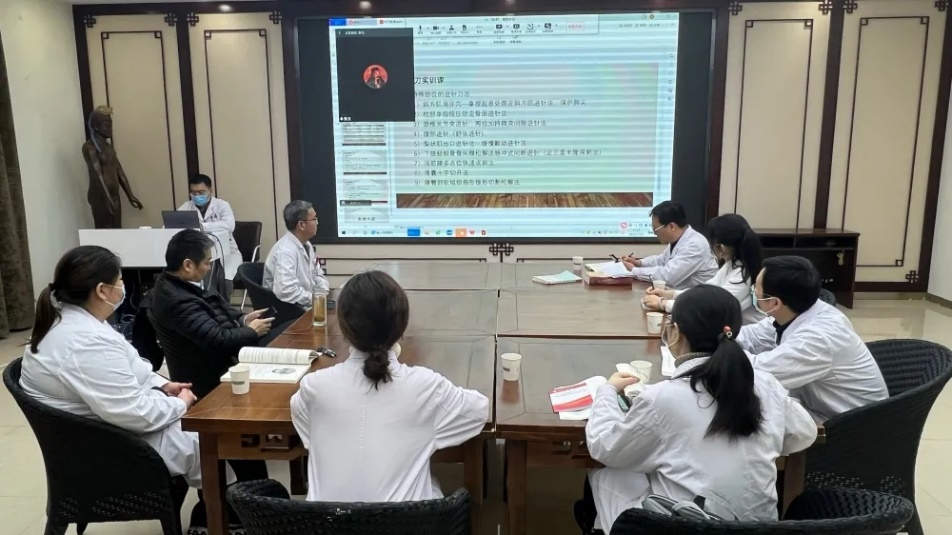 本网讯(通讯员任珊) 1月25日,正值农历小年,在第三附属医院治未病楼116会议室,召开了一场特殊的集体备课,集体备课采用会议现场结合腾讯会议线上模式举行。第三临床医学院针灸临床教研室和针刀医学教研室全体任课教师参加了现场备课,同时邀请北京中医药大学郭长青教授、张义教授,郑州大学基础医学院马钊教授,北京文理学院柳百智教授以及基层专家清丰县人民医院孙彦奇主任在线讨论并给予指导,会议由教研室主任李瑞国主持,针灸学科带头人高希言教授及2名学生代表参加集体备课并参与讨论。