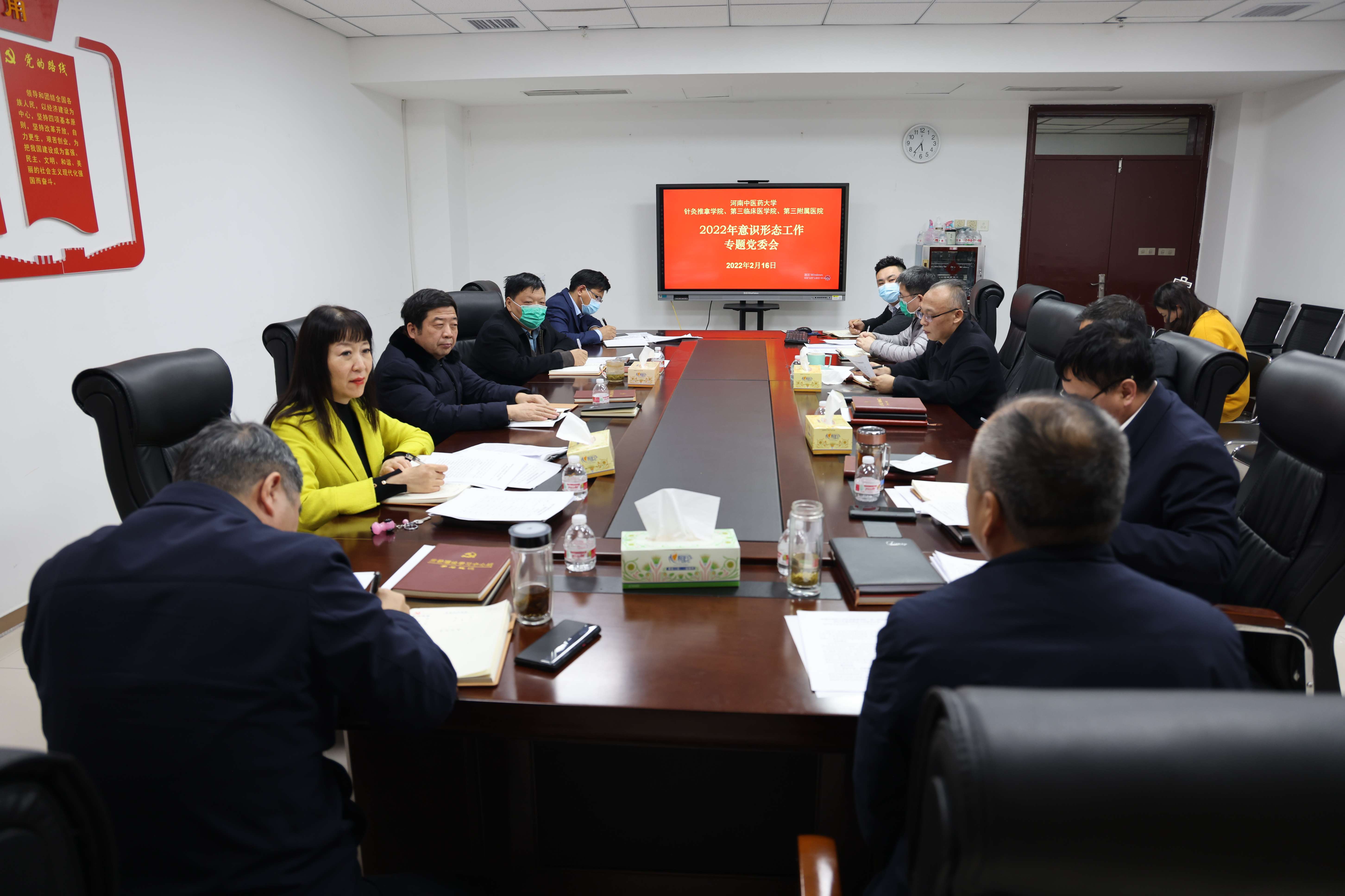 会上,与会人员集中学习了习近平总书记关于意识形态工作的重要论述。党委副书记焦钧传达了医院贯彻落实〈党委(党组)意识形态工作责任制实施办法〉的实施细则》和《医院网络意识形态工作责任制实施细则》相关要求。会议审议通过了医院2022年意识形态工作主要任务并对相关工作进行了具体部署。