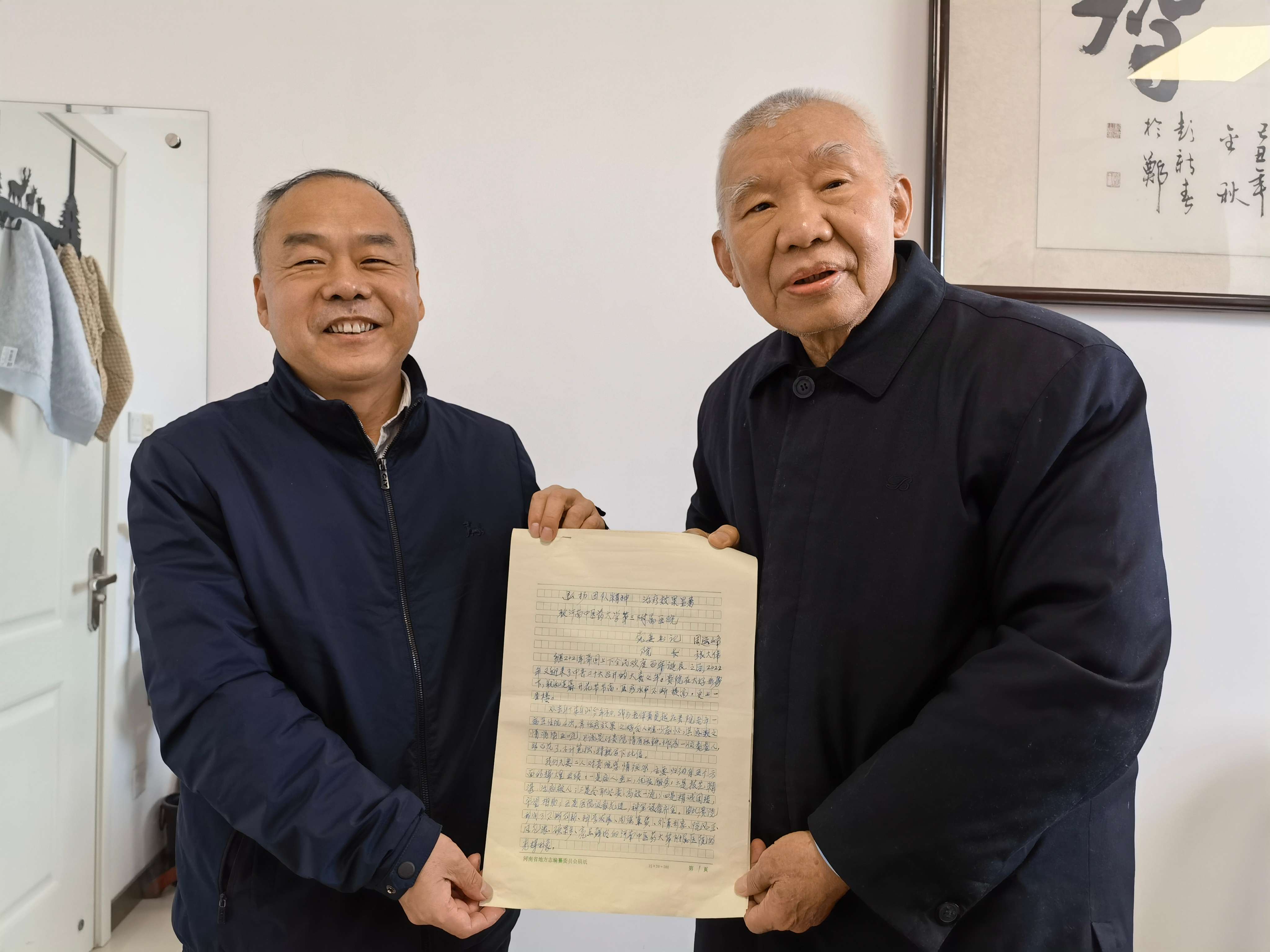 近日,院党委书记周运峰、院长张大伟见到一位耄耋老人,这位老人带来了一份沉甸甸的感谢信,深切表达了对我院老年病一病区的感谢之情,对医院高质量发展的美好祝愿,对创建中医药强省的殷切期盼。