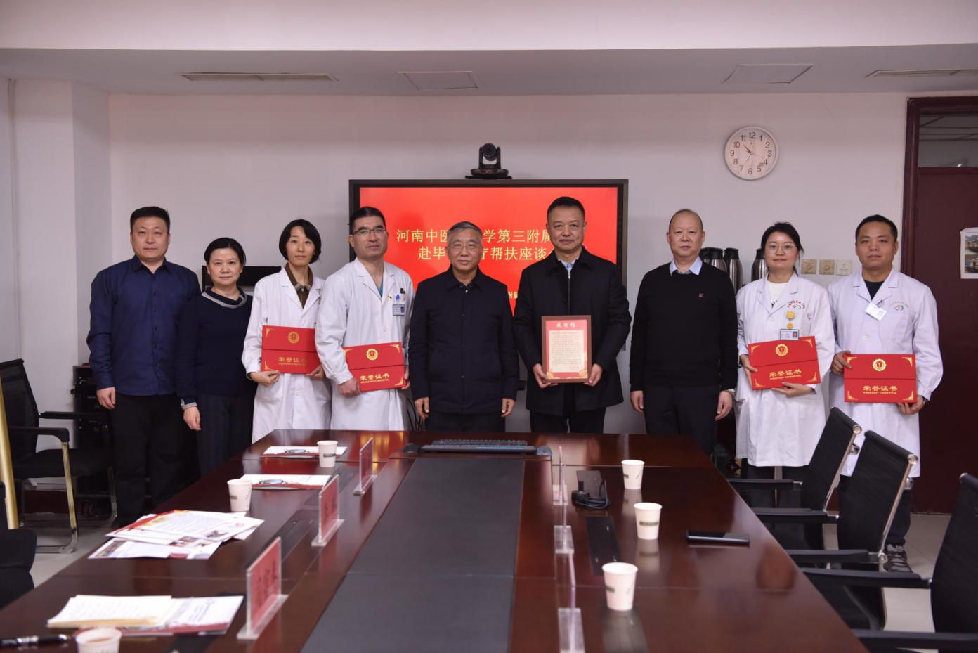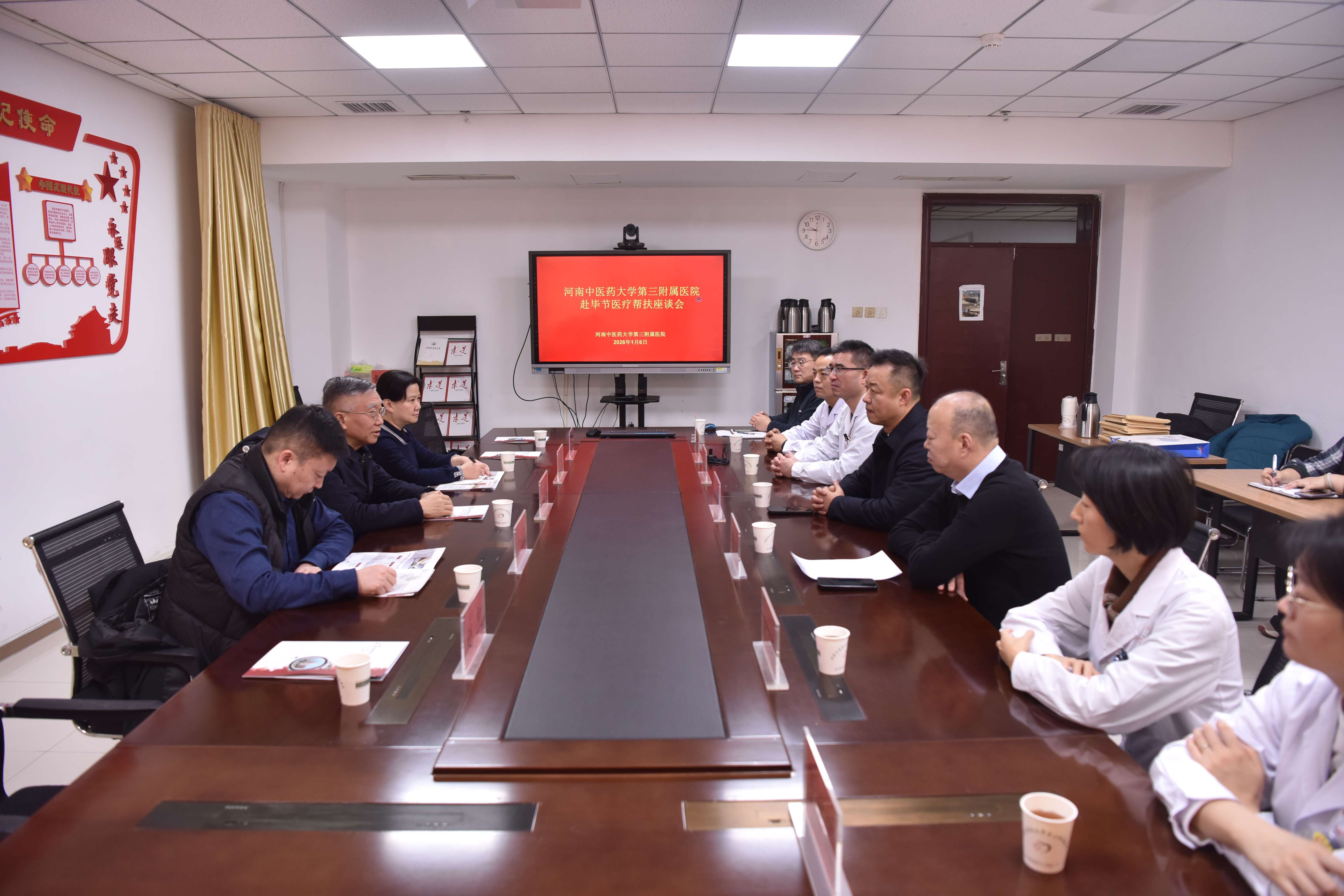 座谈会上,司富春代表致公党中央社会服务部及河南省委会,对我院大力支持“致福医疗·中医联盟”项目表示感谢,并向我院递交感谢信,为表现突出的帮扶专家颁发荣誉证书。他指出,在毕节市七星关区定点帮扶中,我院党委高度重视、周密部署,选派政治坚定、业务精湛的中医专家团队深入基层,将优质中医药服务送到群众家门口,显著提升当地诊疗能力,推动资源下沉,增强群众健康获得感,有力助推脱贫攻坚成果与乡村振兴有效衔接。