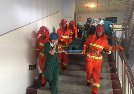 演练前,保卫科结合医院外科楼实际,认真制定此次演练活动方案,召开动员会议,张进一副院长在会上提出演练要求:“演练要在安全的基础上贴近实战,不能流于形式,走过场”。下午17:00时,随着四楼外科值班护士一声“着火了”,灭火、疏散演练正式开始。消防中控室接到报警后迅速启动应急广播等消防设施,各科室医护人员在主任护士长的带领下紧张有序的组织人员灭初起火、疏散住院患者、转移手术病人,各小组人员迅速到达火灾现场,协助扑救初起火灾、搜救转移手术病人等措施.演练共用时6分5秒,100多名医护人员、患者、手术病人全部安全疏散完毕,整个过程紧张有序、实用性强,达到了预期效果。