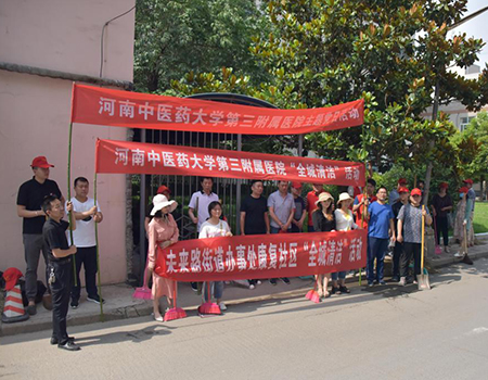 为进一步维护院区卫生,给全院职工和患者一个干净环境,坚持以习近平总书记在全国卫生与健康大会上的讲话精神为指导,全面贯彻落实《关于印发郑州市2018年全城清洁行动工作方案的通知》(郑政办明电【2018】46号)文件精神,我院于6月15号上午9:00,由副院长张进一带队,组织职工开展了院区清扫主题党日活动。