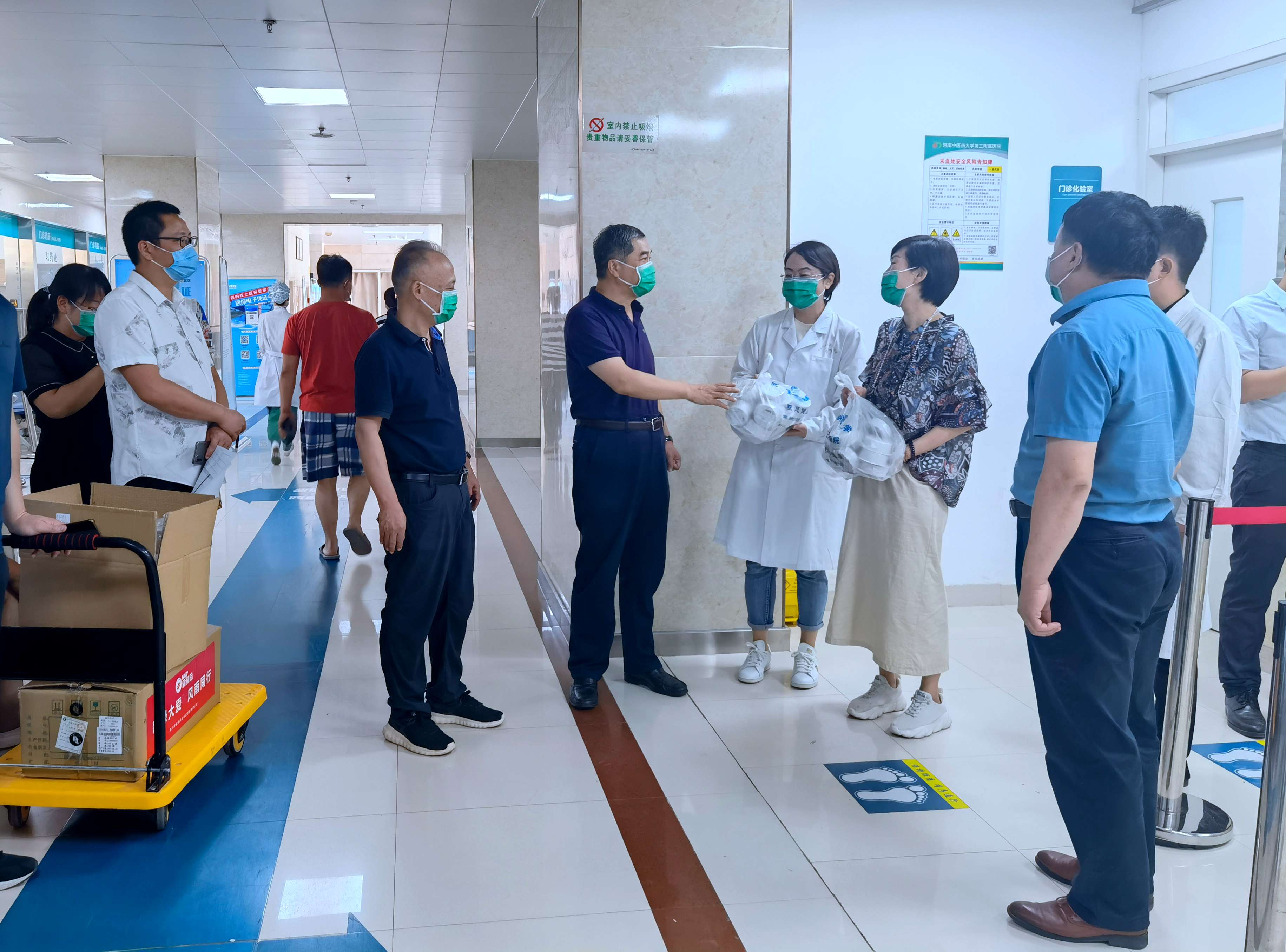 党委副书记、院长张大伟等为患者职工发放防疫药品
