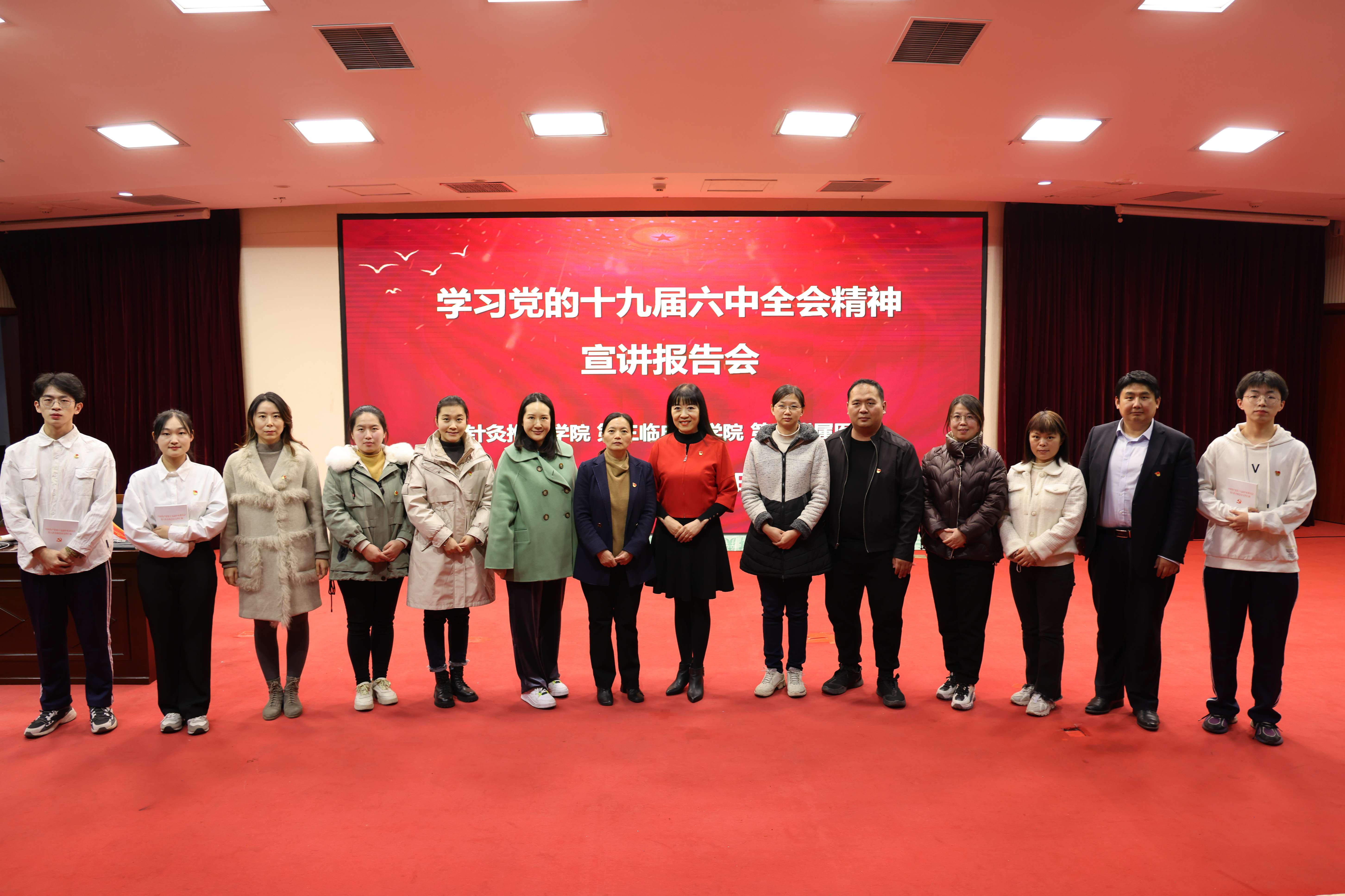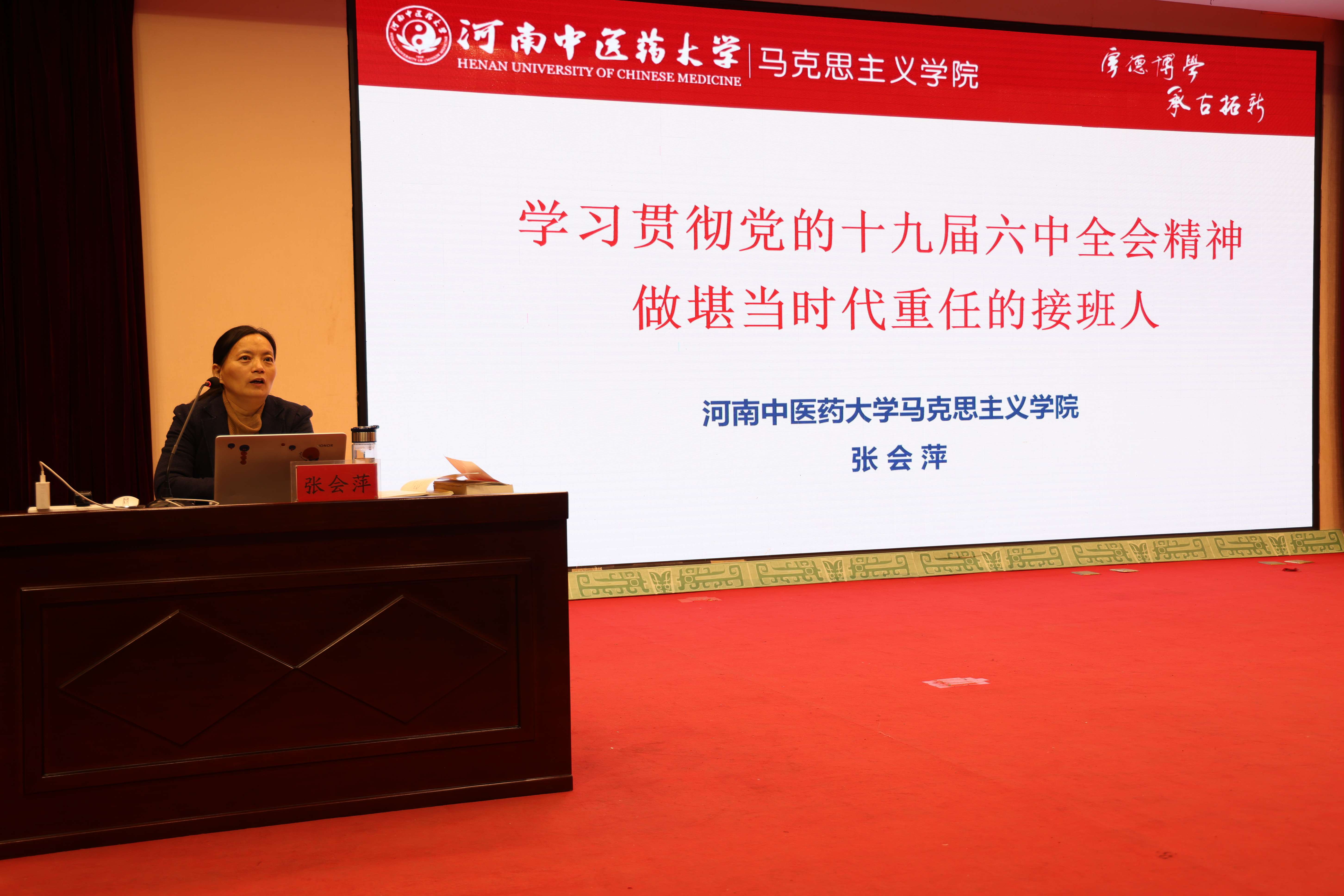 本网讯(通讯员丁璐) 为了深入学习贯彻党的十九届六中全会精神,按照学校和学院党委的工作部署,2021年12月7日下午,第三临床医学院在龙子湖校区图书馆第一报告厅举办党的十九届六中全会精神专题宣讲报告会,邀请马克思主义学院院长张会萍教授授课,报告会由院党委副书记焦钧主持。第三临床医学院全体辅导员老师、龙子湖校区新老生班委、党员代表、入党积极分子代表、共青团员代表、群众代表、少数民族代表及贫困生代表等150名本专科和研究生现场参加了本次报告会,其他同学通过线上参加报告会。