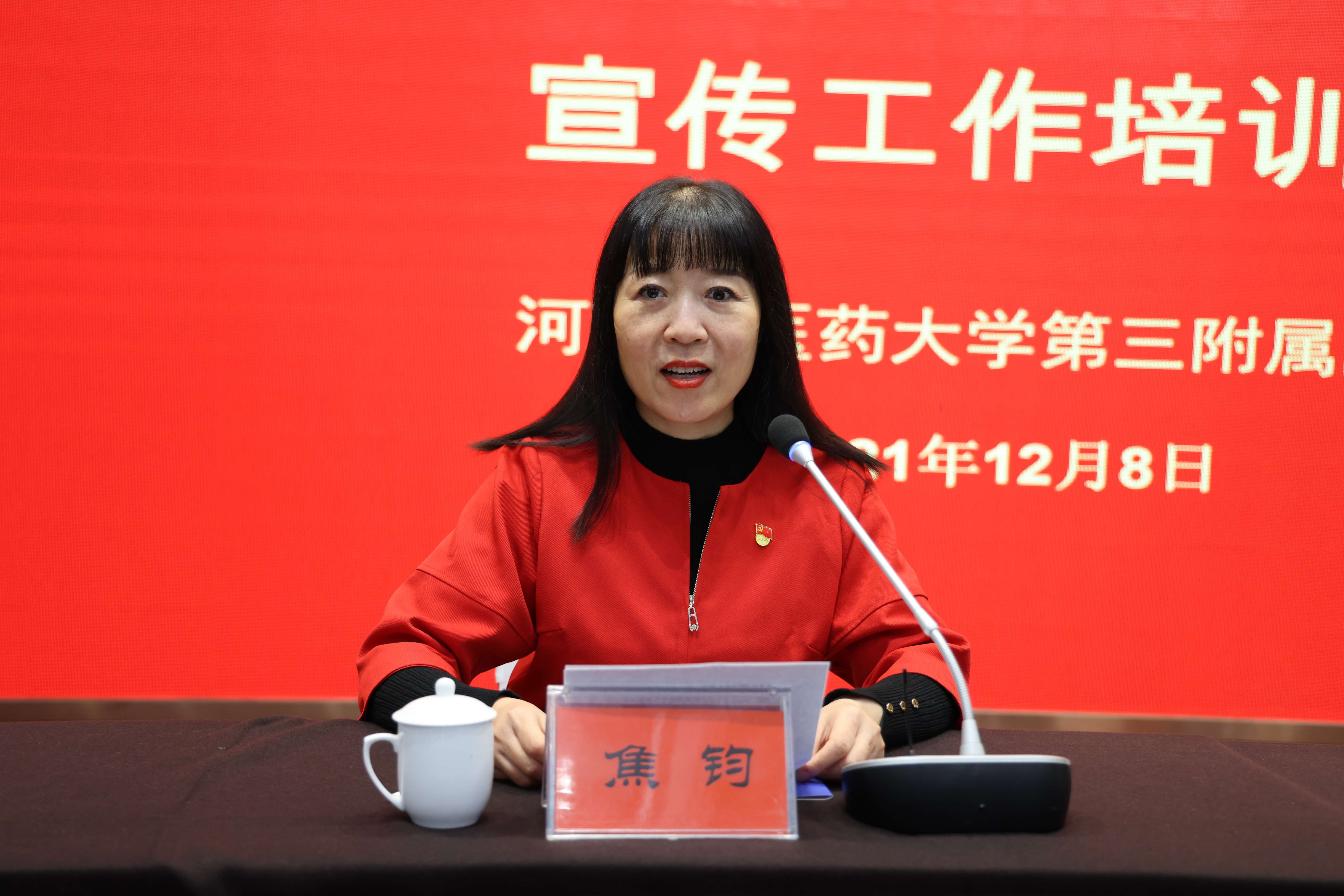 焦钧在主持开班仪式时指出,学习全会精神,践行初心使命,对于进一步提升宣传队伍政治判断力、政治领悟力、政治执行力,宣传好全会精神,讲好党的百年奋斗重大成就和历史经验具有重要的意义。她希望广大学员要珍惜此次培训机会,用综合能力的提升更好地宣传好全会精神,切实做到学以致用、用以促学、学用相长、知行合一,用学习成果更好推动医院宣传工作落到实处,奏响“奋勇争先、更加出彩”的中医药最强音。