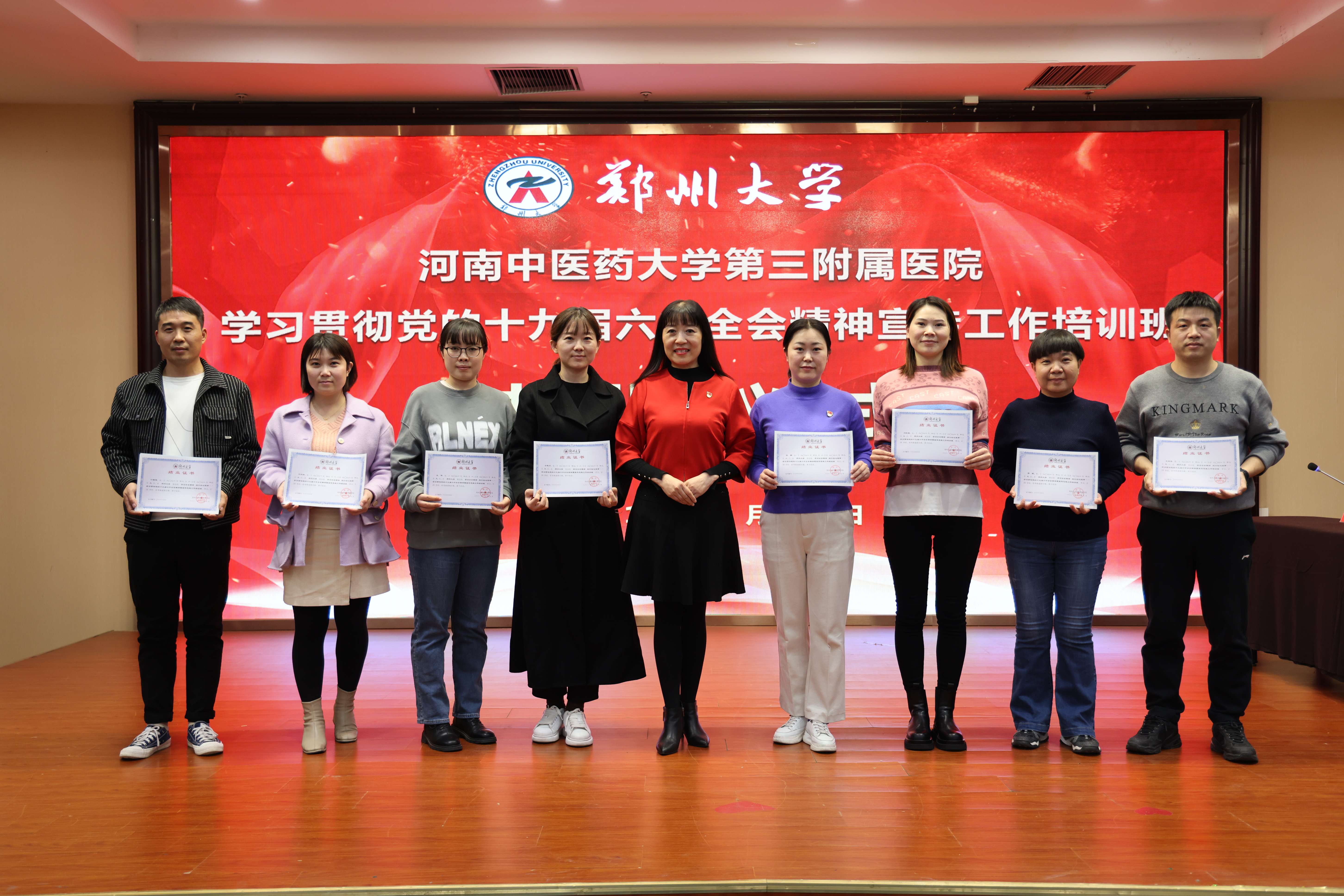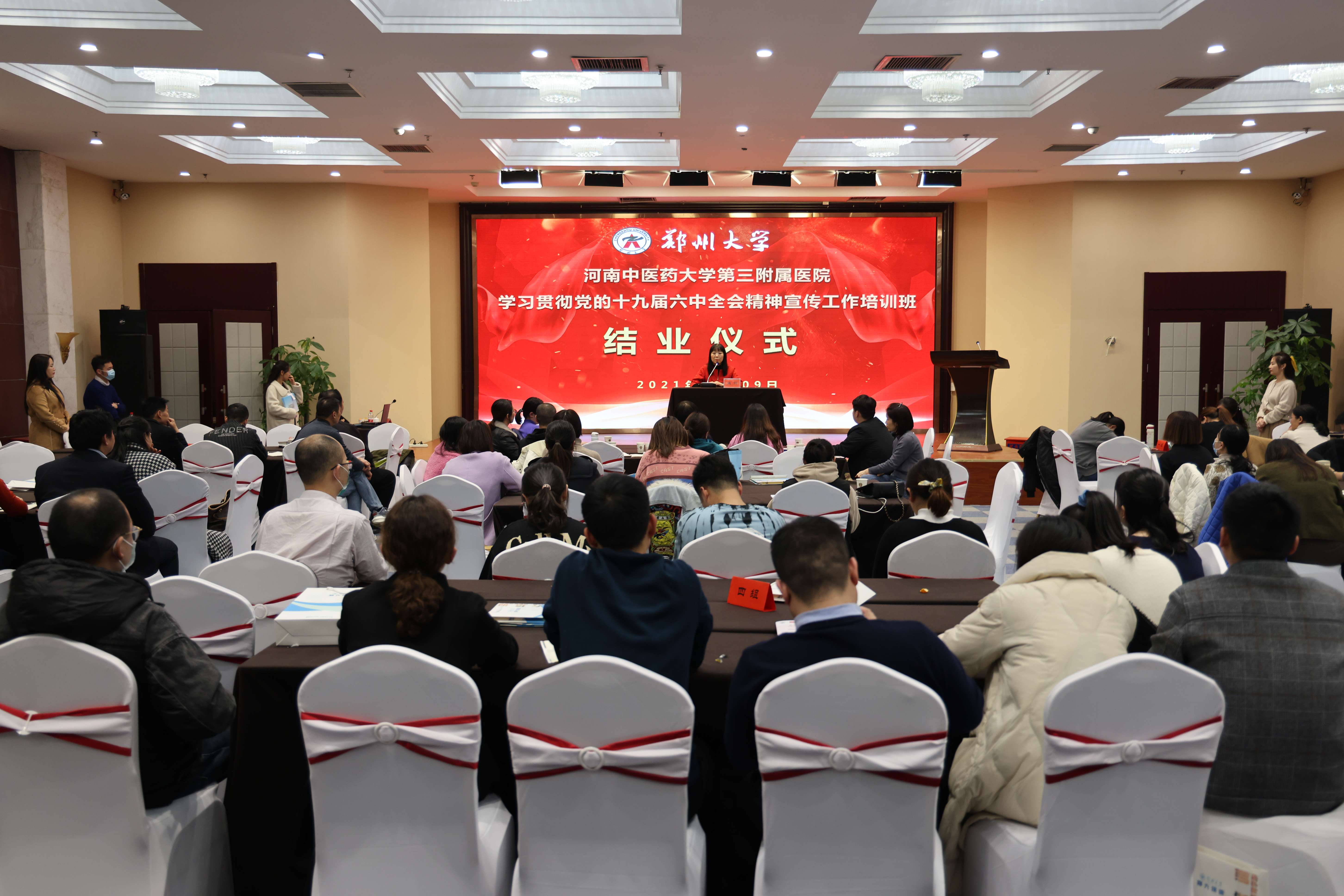 本网讯(通讯员潘向昆 图田辉) 学习全会精神,践行初心使命。为持续深入学习贯彻党的十九届六中全会精神,提升宣传队伍素质能力,进一步做好新时代宣传工作。2021年12月8-9日,我院举办学习党的十九届六中全会精神宣传工作培训班,院党委书记周运峰,郑州大学继续教育学院项目培训部主任朱雨出席开班仪式。以医院中层干部代表、各临床科室业务骨干组成的90余名通讯员在郑州大学继续教育学院参加培训。党委副书记焦钧主持开班仪式。