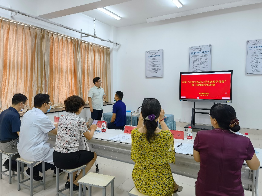 本网讯(通讯员范普雨) 为进一步贯彻落实习近平总书记关于教育的重要论述和全国全省教育大会精神,推进实践教学改革与创新,增强教师带教能力,不断提高学院实践教学整体水平,第三临床医学院于2022年6月21日下午在东明校区1号楼实训中心705举办首届“河南中医药大学实践教学竞赛”第三临床医学院选拔赛。竞赛评委由教研室主任及临床科室主任担任。第三临床医学院院长张大伟莅临指导,比赛由教学办副主任范普雨主持。
