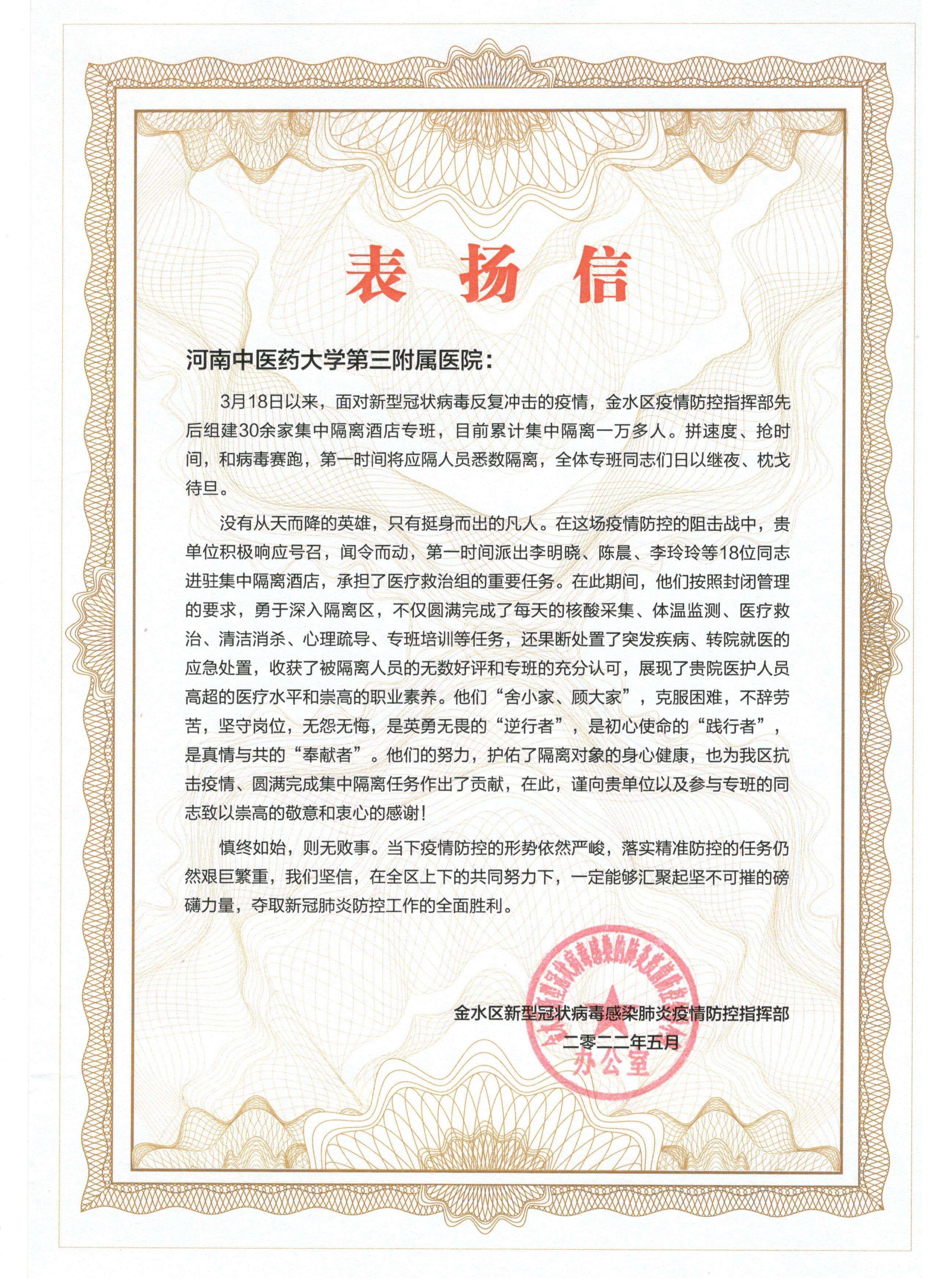 一封来自金水区新冠肺炎疫情防控指挥部的感...